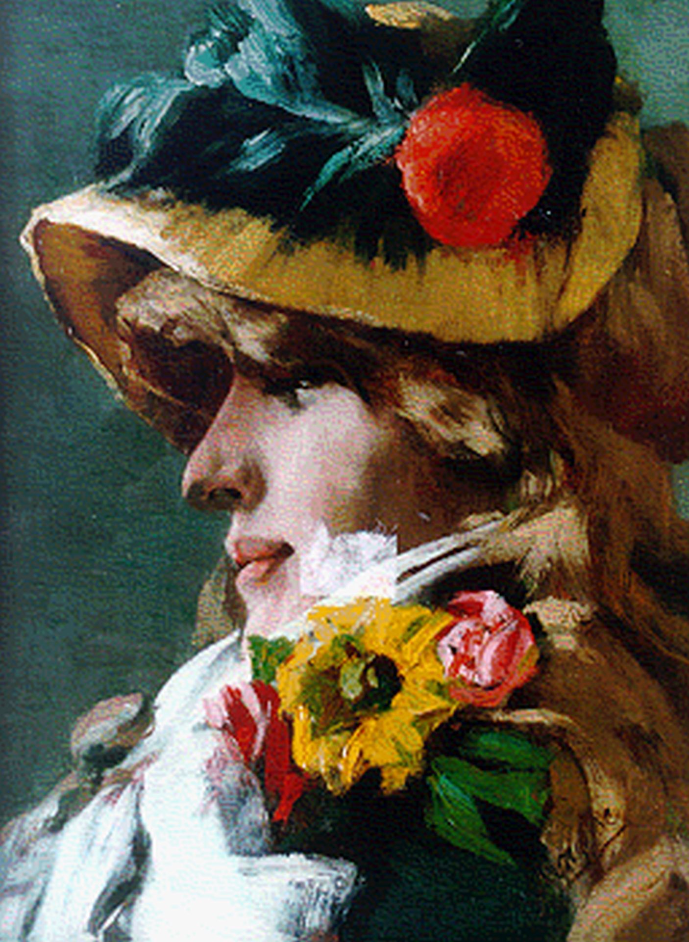 Gustave Vanaise kunstwerk • schilderij • voorheen te koop Vrouw met hoed