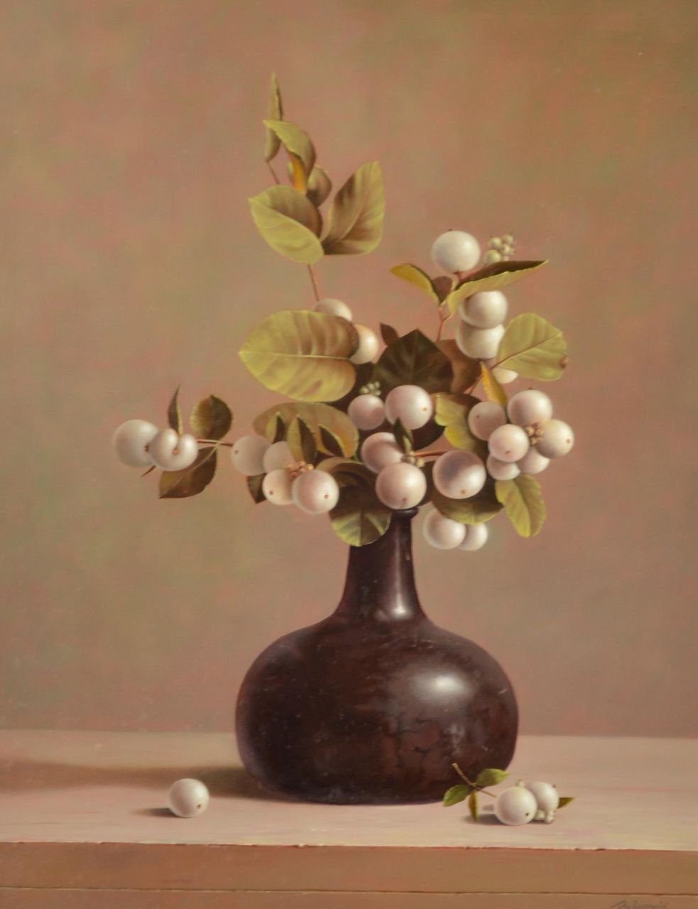 Gyula Bubarnik kunstwerk • schilderij • voorheen te koop Stilleven met sneeuwbessen