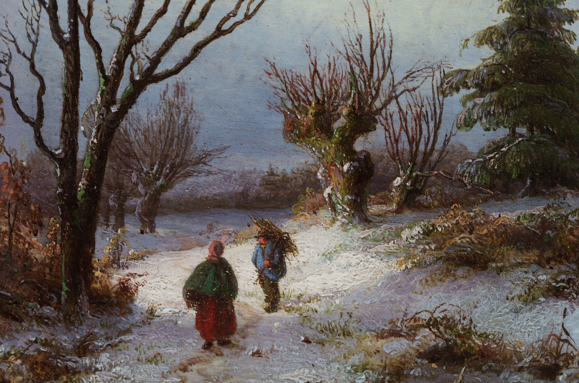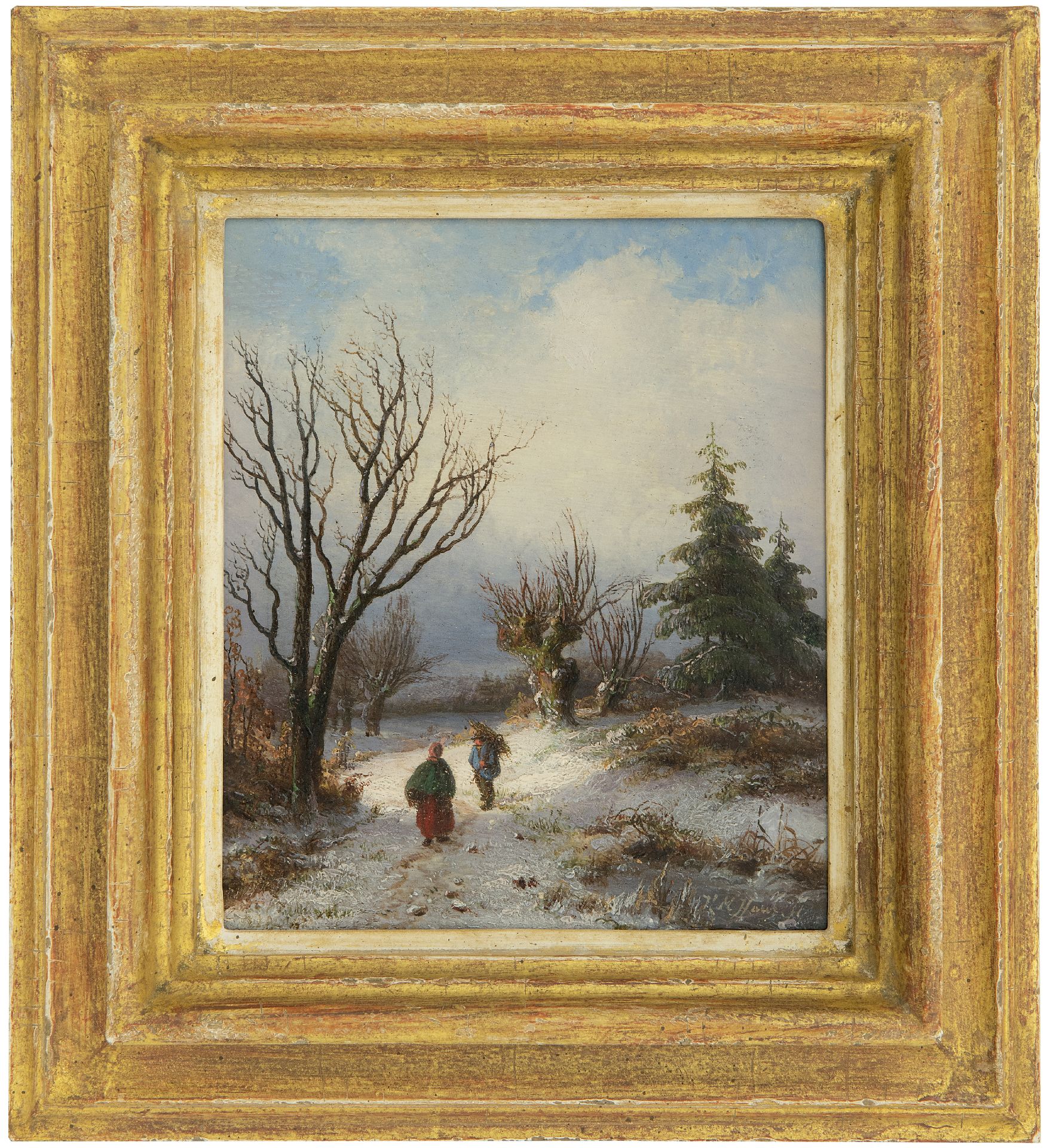 H.M. Haus kunstwerk • schilderij • voorheen te koop Houtsprokkelaars op besneeuwd pad