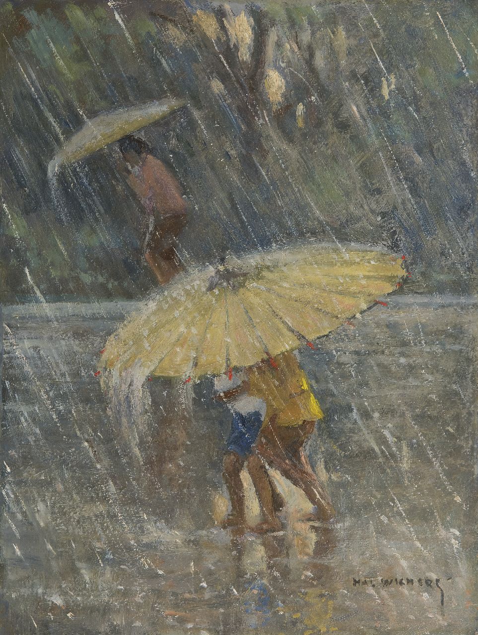 Hal Wichers kunstwerk • schilderij • voorheen te koop De tropische regenbui