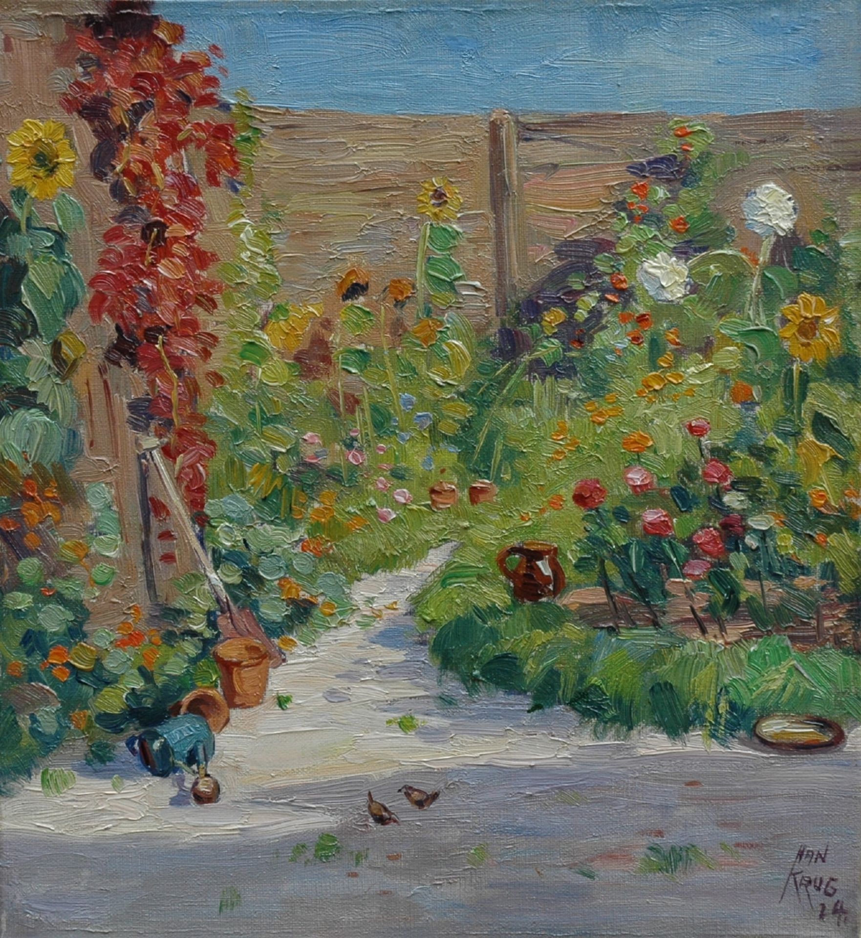 Han Krug kunstwerk • schilderij • voorheen te koop Zonnige tuin in de Begoniastraat, Den Haag