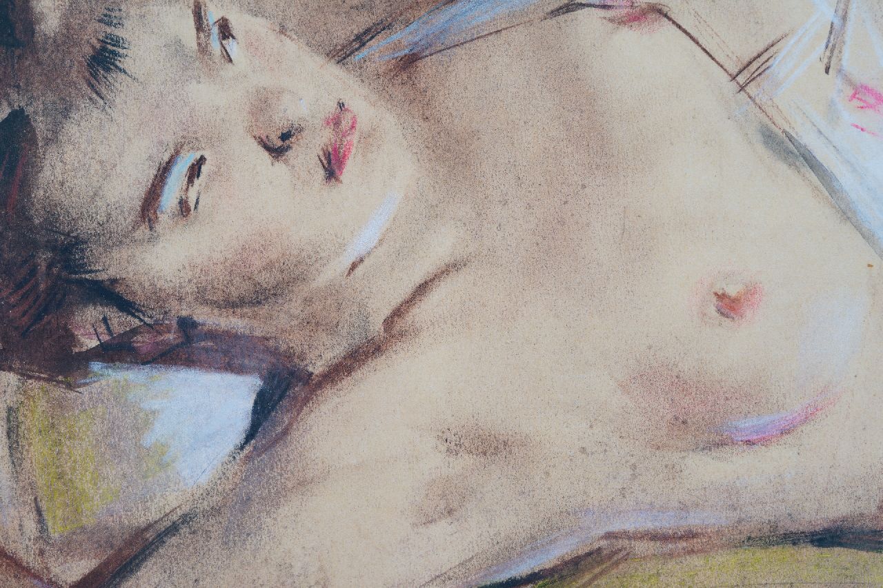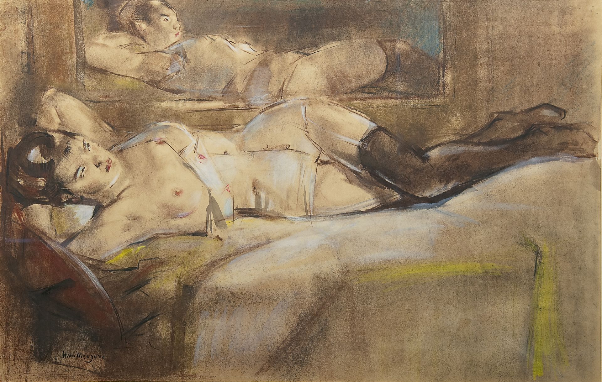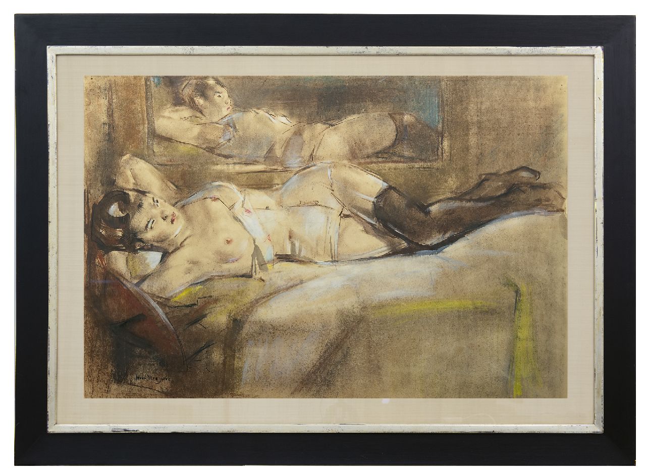 Han van Meegeren kunstwerk • aquarel • tekening • voorheen te koop Liggend naakt voor een spiegel