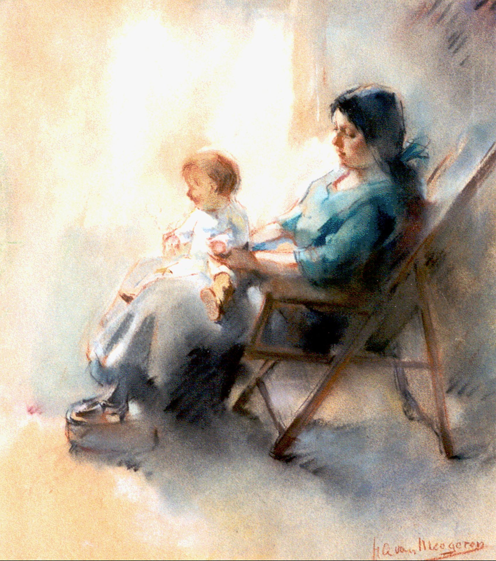 Han van Meegeren kunstwerk • aquarel • tekening • voorheen te koop Moeder met kind