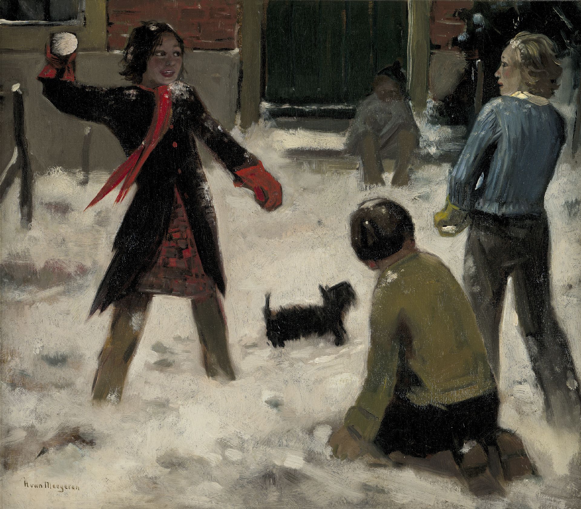 Han van Meegeren kunstwerk • schilderij • voorheen te koop Sneeuwballen gooien