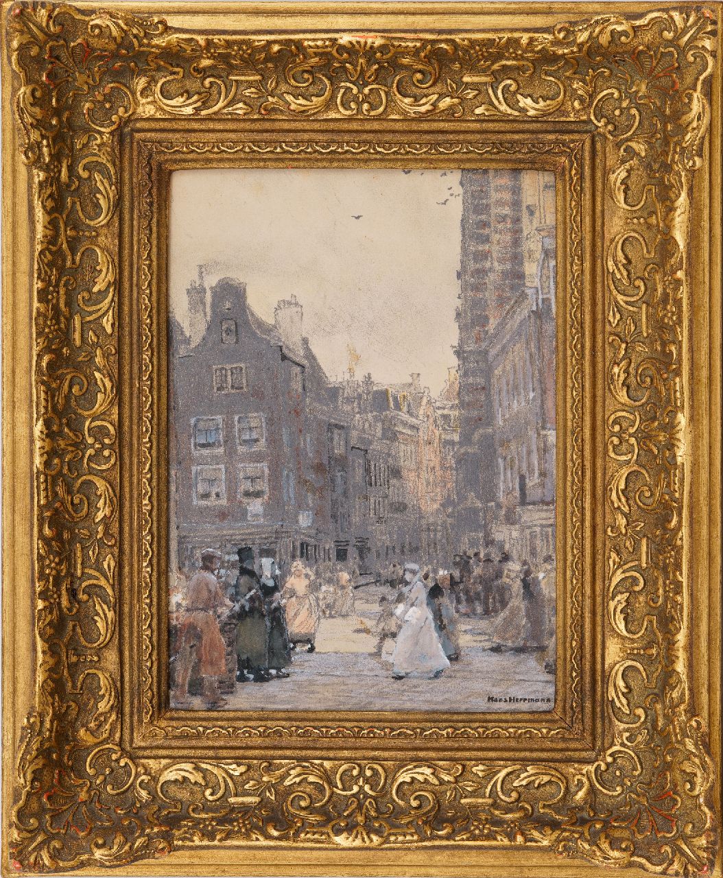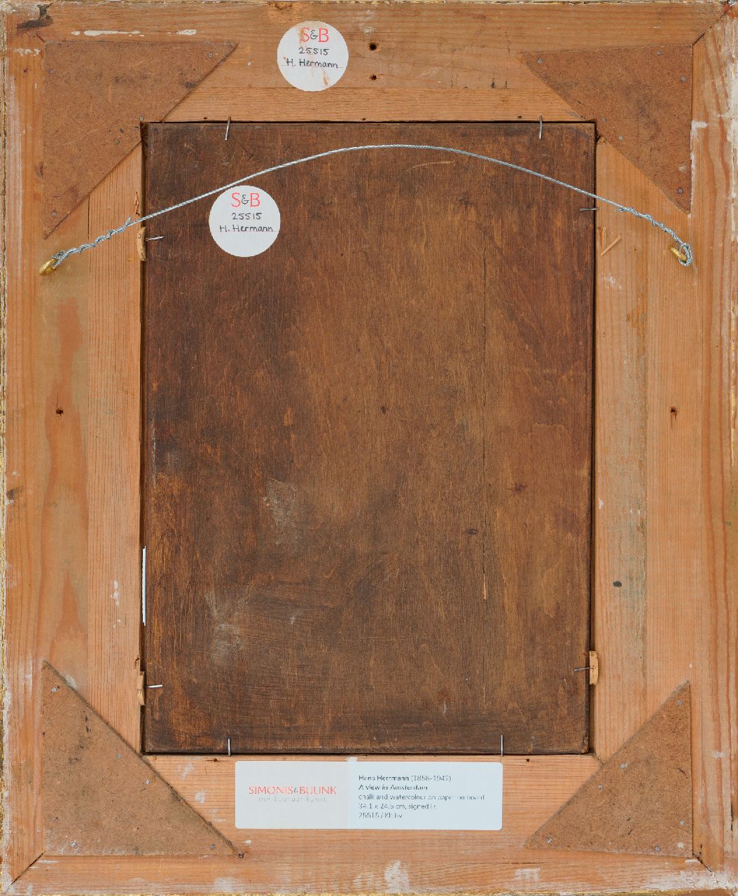 Hans Herrmann kunstwerk • aquarel • tekening • te koop Stadsgezicht in Amsterdam