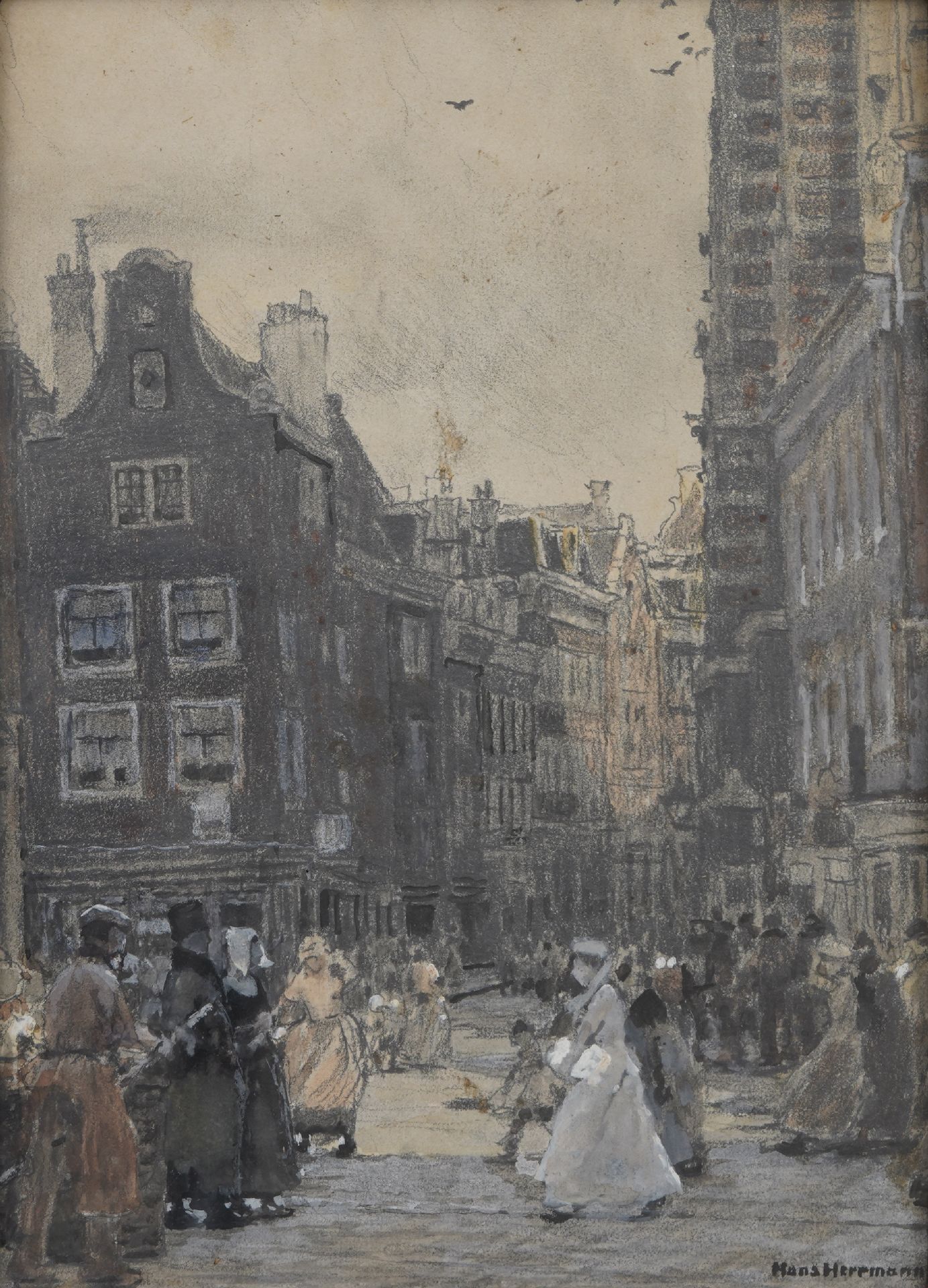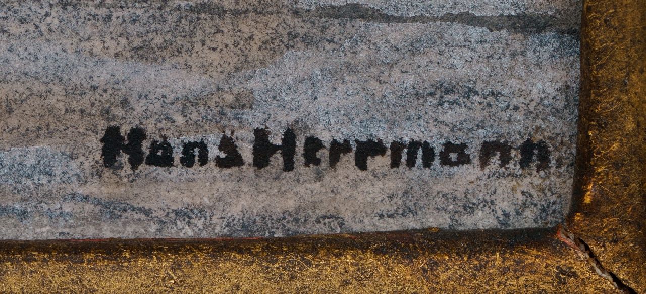 Hans Herrmann behoorde tot de groep Duitse landschapschilders, meest leerlingen van de zeeschilder E.G. Dücker (1841-1916) aan de Düsseldorfer Akademie, die na 1885 met regelmatige tussenpozen naar de Hollandse kust trokken om in Katwijk en Scheveningen het vissersleven te schilderen. Herrmann kwam in 1890 voor het eerst naar Katwijk, in het voetspoor van German Grobe (1857-1938) die in 1887 zijn eerste bezoek aan dit schilderachtige vissersdorpje bracht. Karakteristiek voor de kustlandschappen van deze schilders zijn de uitgewogen kleur- en lichtwaarden en een losse, impressionistische toets. Behalve door zijn Hollandse strandgezichten werd Herrmann ook bekend door zijn rijkelijk met figuren gestoffeerde stadsgezichten van Amsterdam, Dordrecht, Vlissingen en Rotterdam.