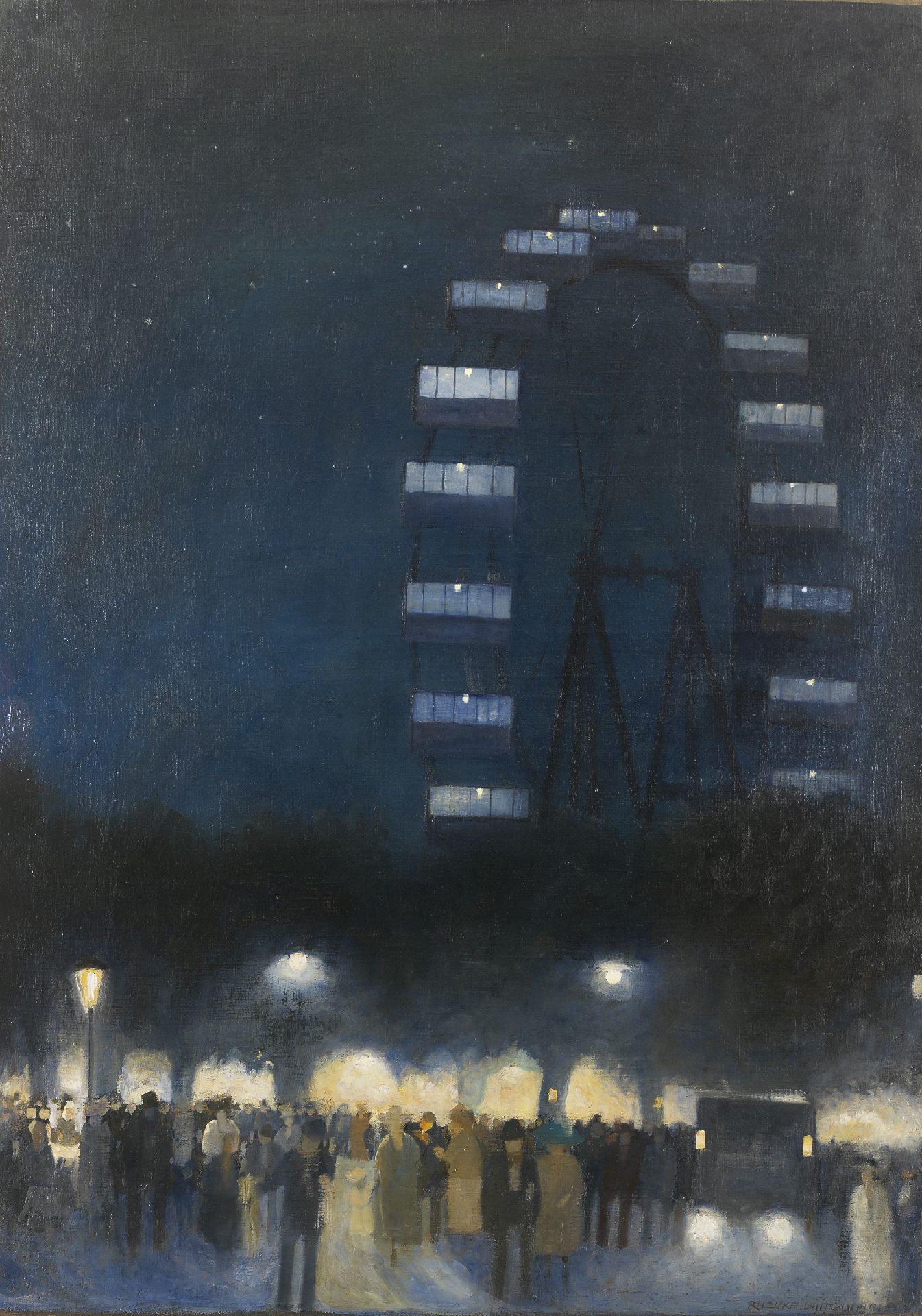 Hans Ruzicka-Lautenschläger kunstwerk • schilderij • voorheen te koop Het reuzenrad in het Prater in Wenen bij avond
