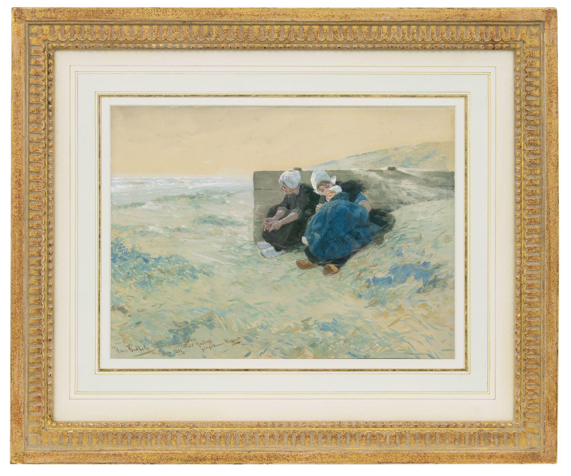 Hans von Bartels kunstwerk • aquarel • tekening • voorheen te koop Twee vrouwen en kind in de duinen