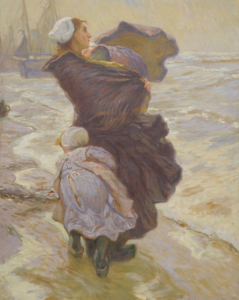 Hans von Bartels kunstwerk • schilderij • voorheen te koop Wachten op de vissersvloot