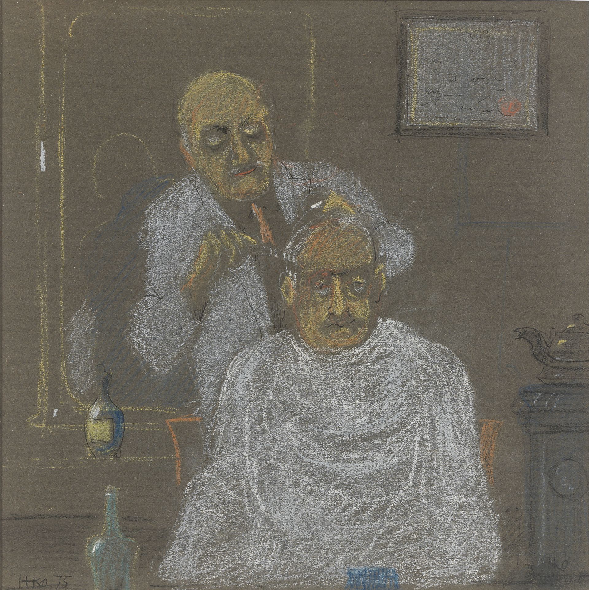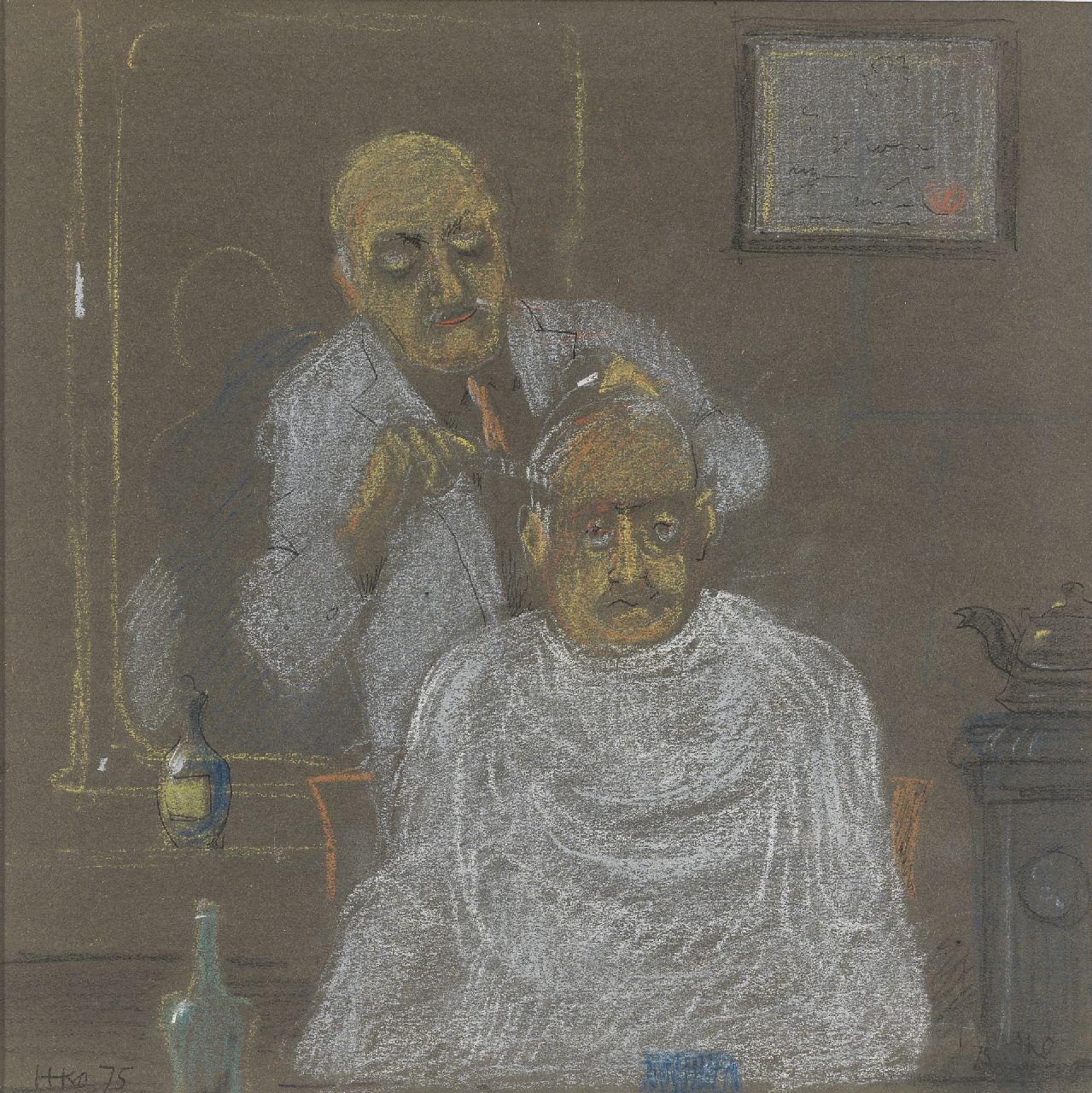 Harm Kamerlingh Onnes kunstwerk • aquarel • tekening • voorheen te koop Bij de kapper