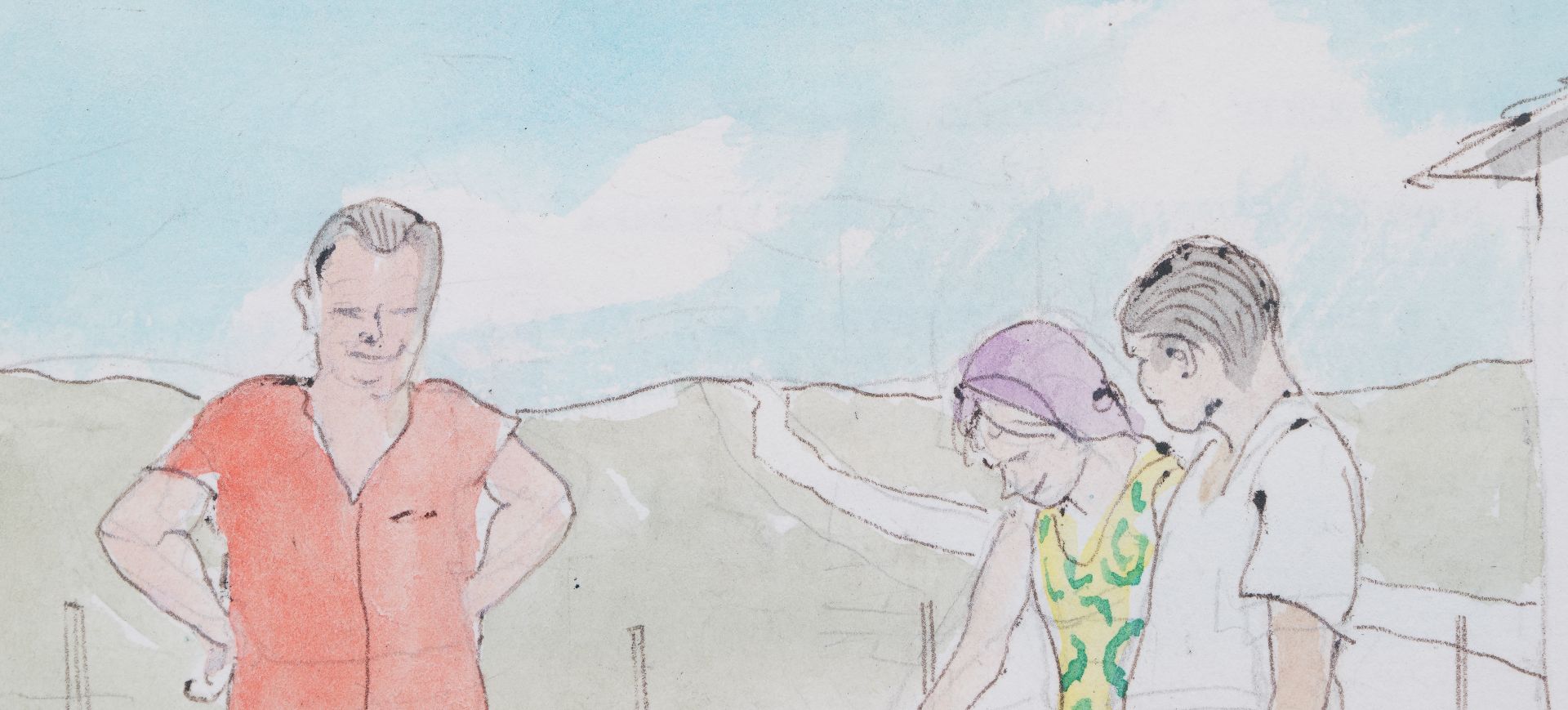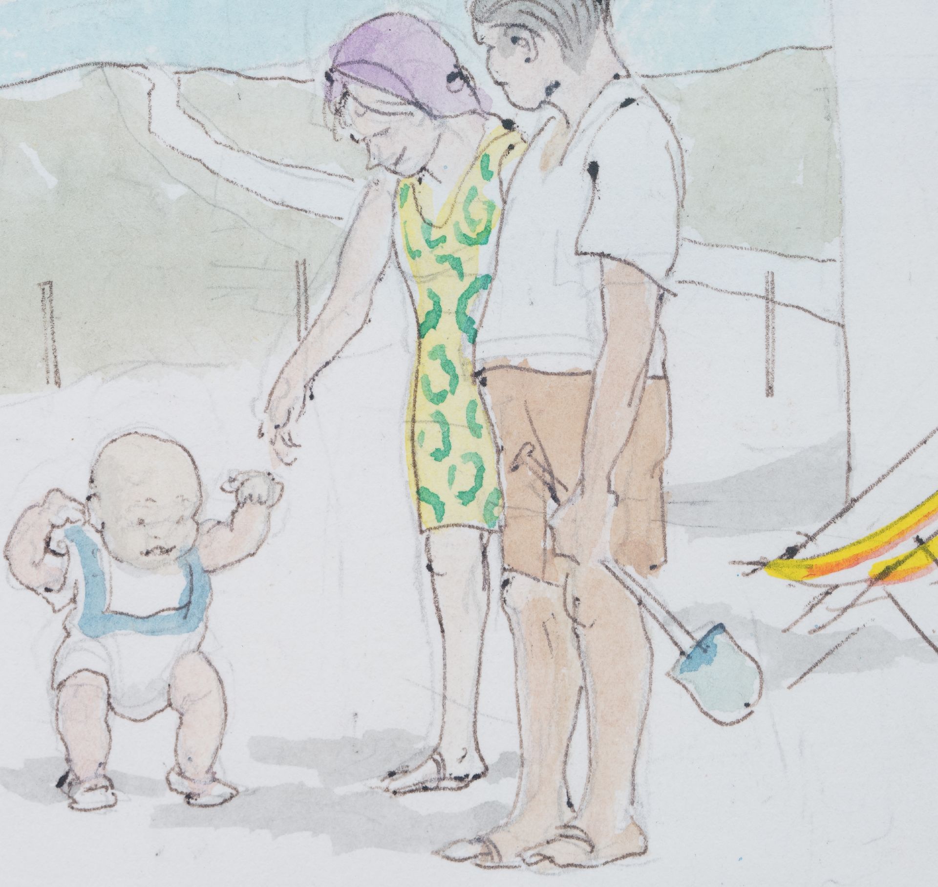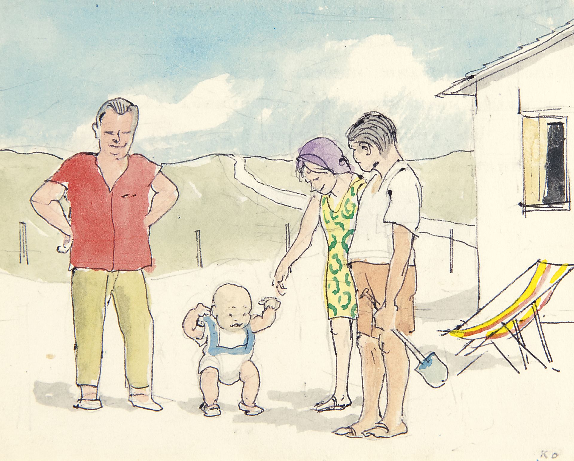 Harm Kamerlingh Onnes kunstwerk • aquarel • tekening • te koop De eerste stapjes op het strand