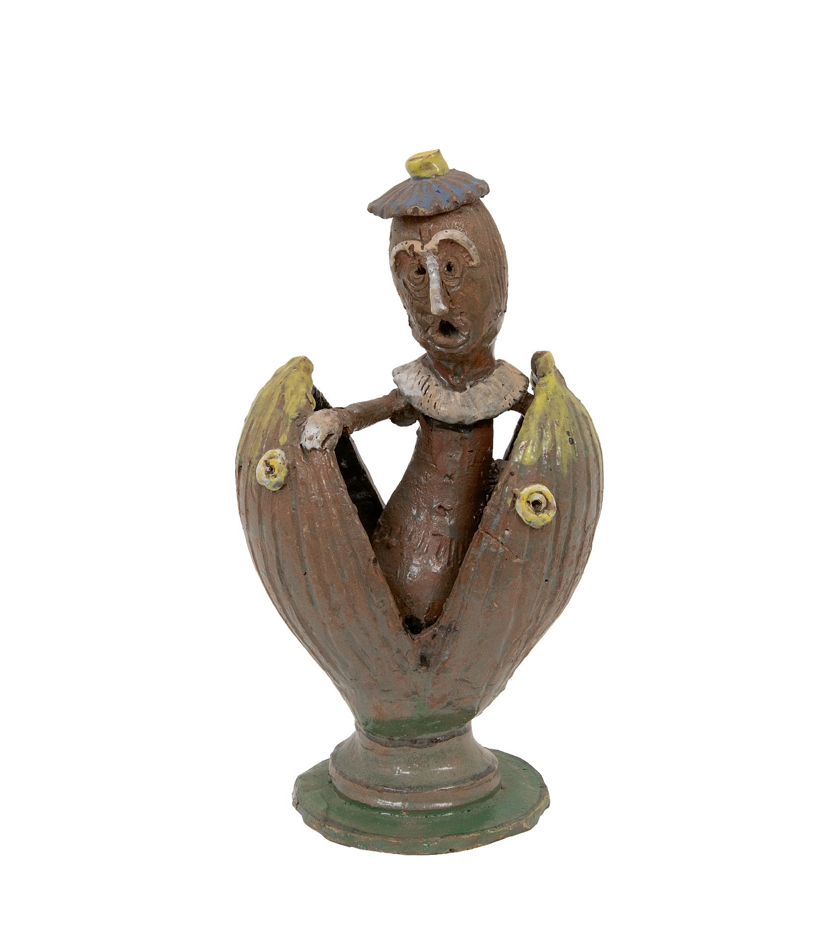 Harm Kamerlingh Onnes | Dienstbode, polychroom geglazuurd aardewerk, 25,5 x 11,5 cm, gesigneerd aan de binnenkant met monogram en gedateerd '76
