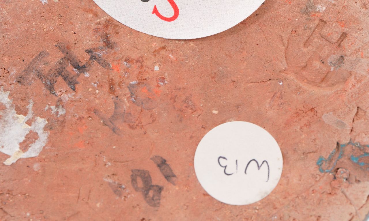 keramiek 25,5 x 13,5 cm, gesigneerd met monogram en stempel op de onderkant