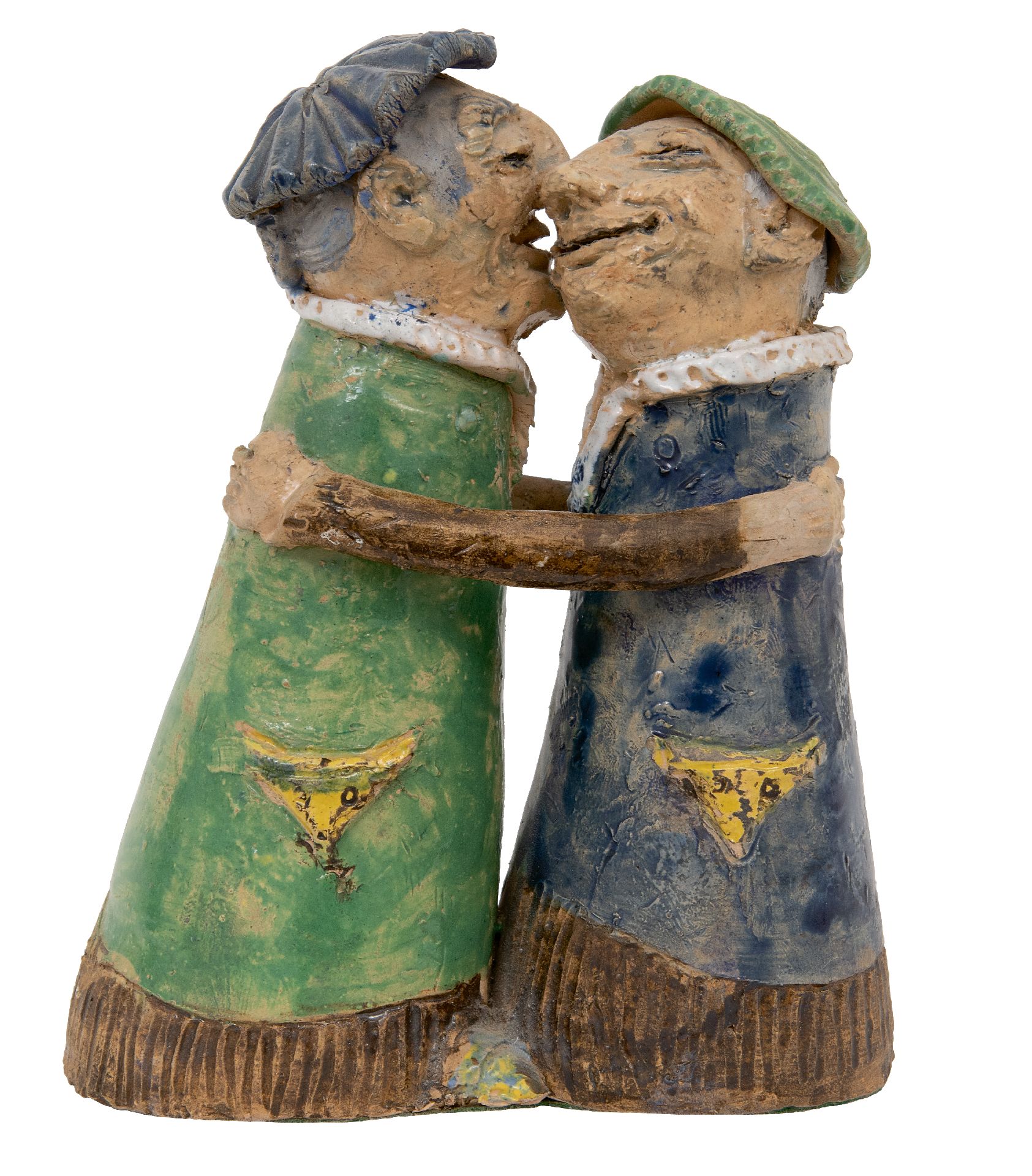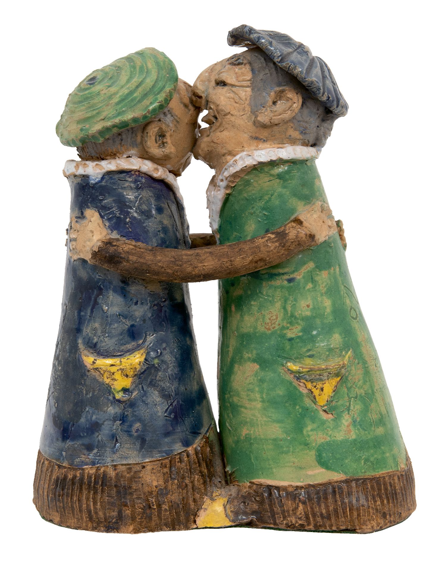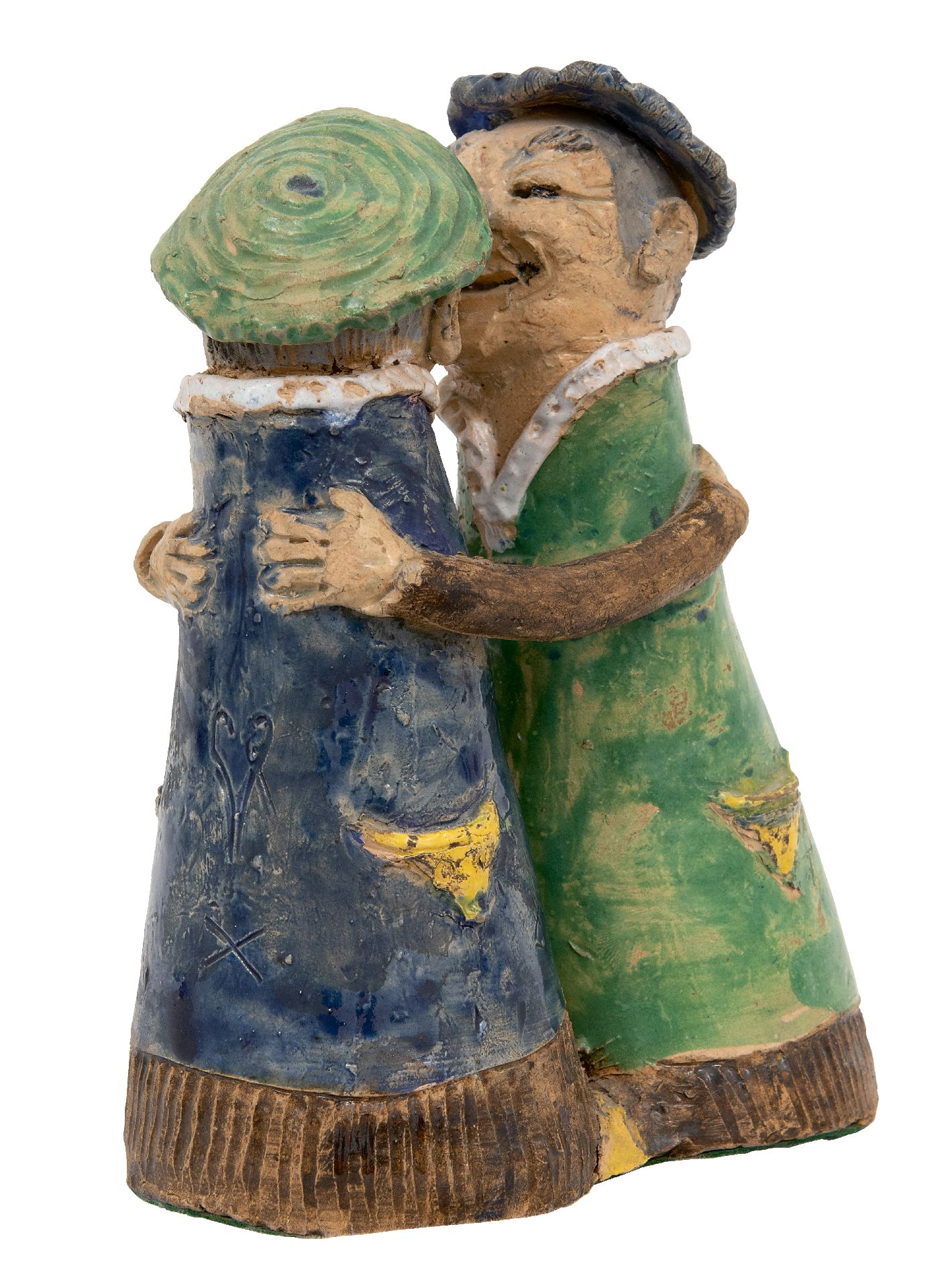 polychroom geglazuurd aardewerk 22,0 x 17,0 cm, gesigneerd aan de binnenkant met monogram en aan de binnenkant gedateerd '75