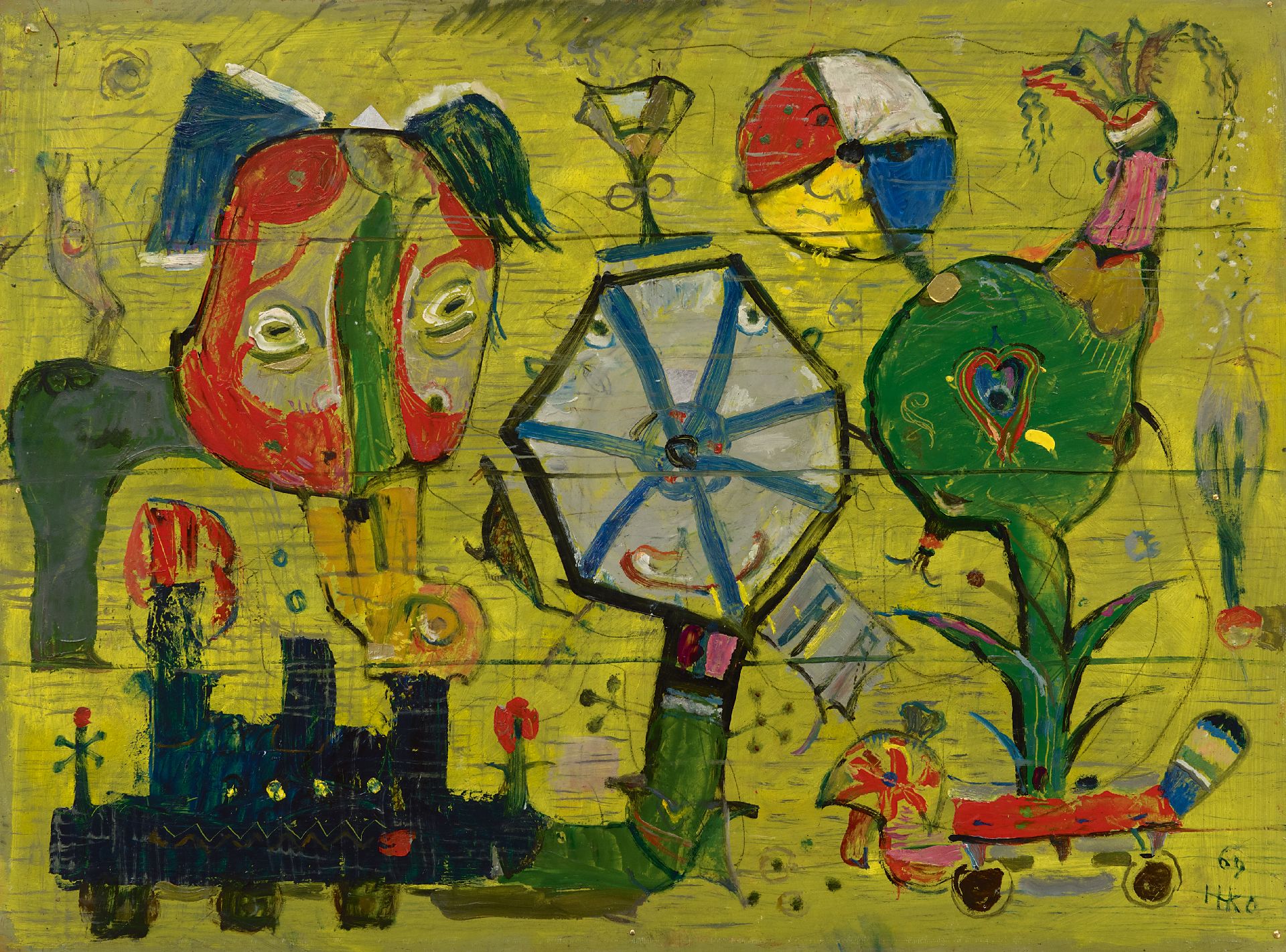 Harm Kamerlingh Onnes kunstwerk • schilderij • voorheen te koop Kinderschilderij op schutting