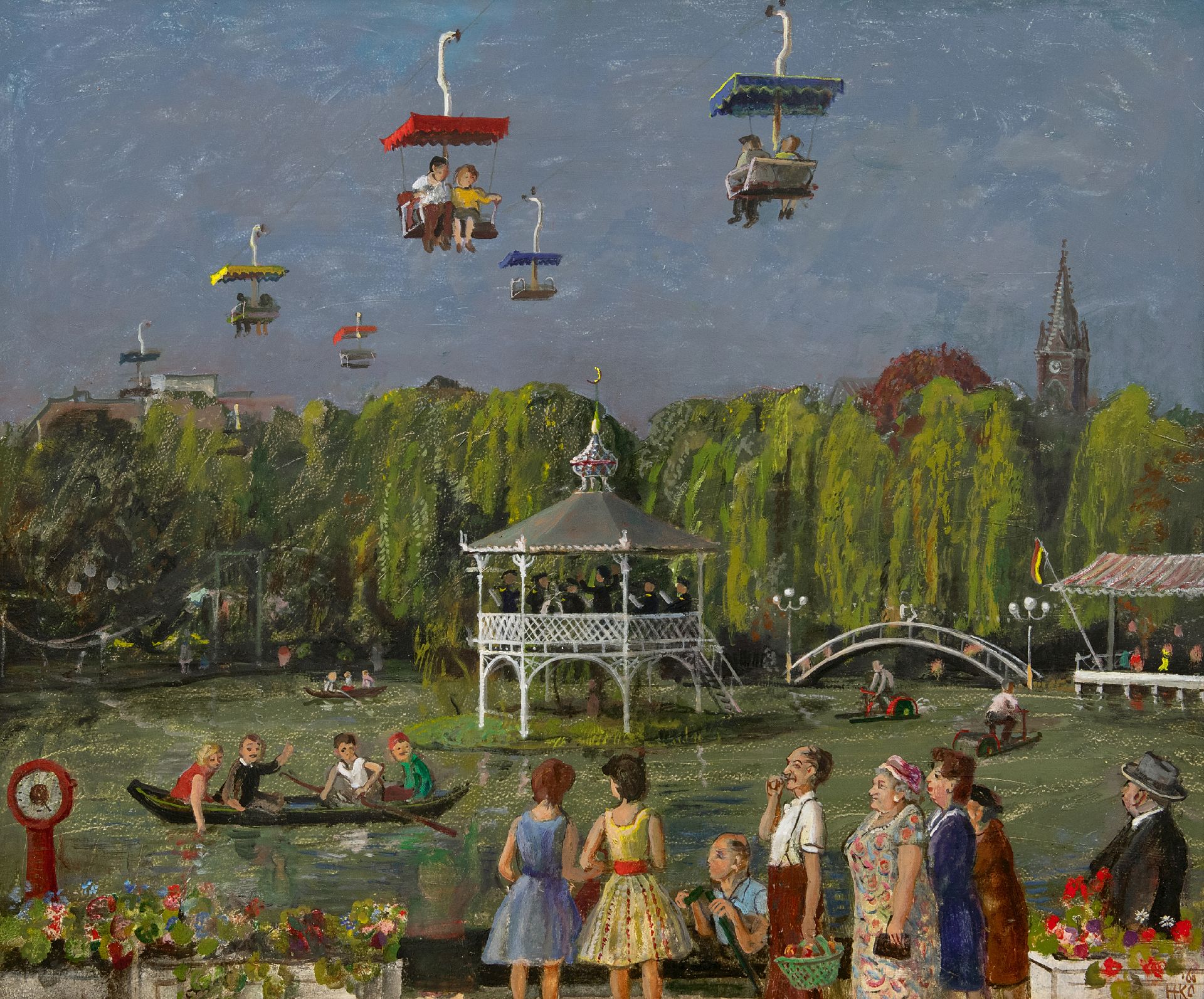 Harm Kamerlingh Onnes kunstwerk • schilderij • te koop Pret in het kabelbaanpark van Valkenburg