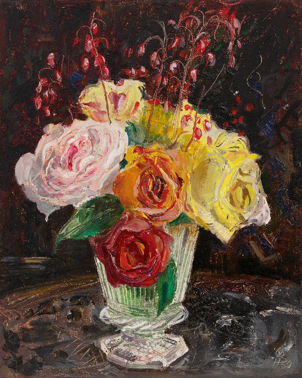 Harm Kamerlingh Onnes kunstwerk • schilderij • voorheen te koop Rozen in een glazen vaas