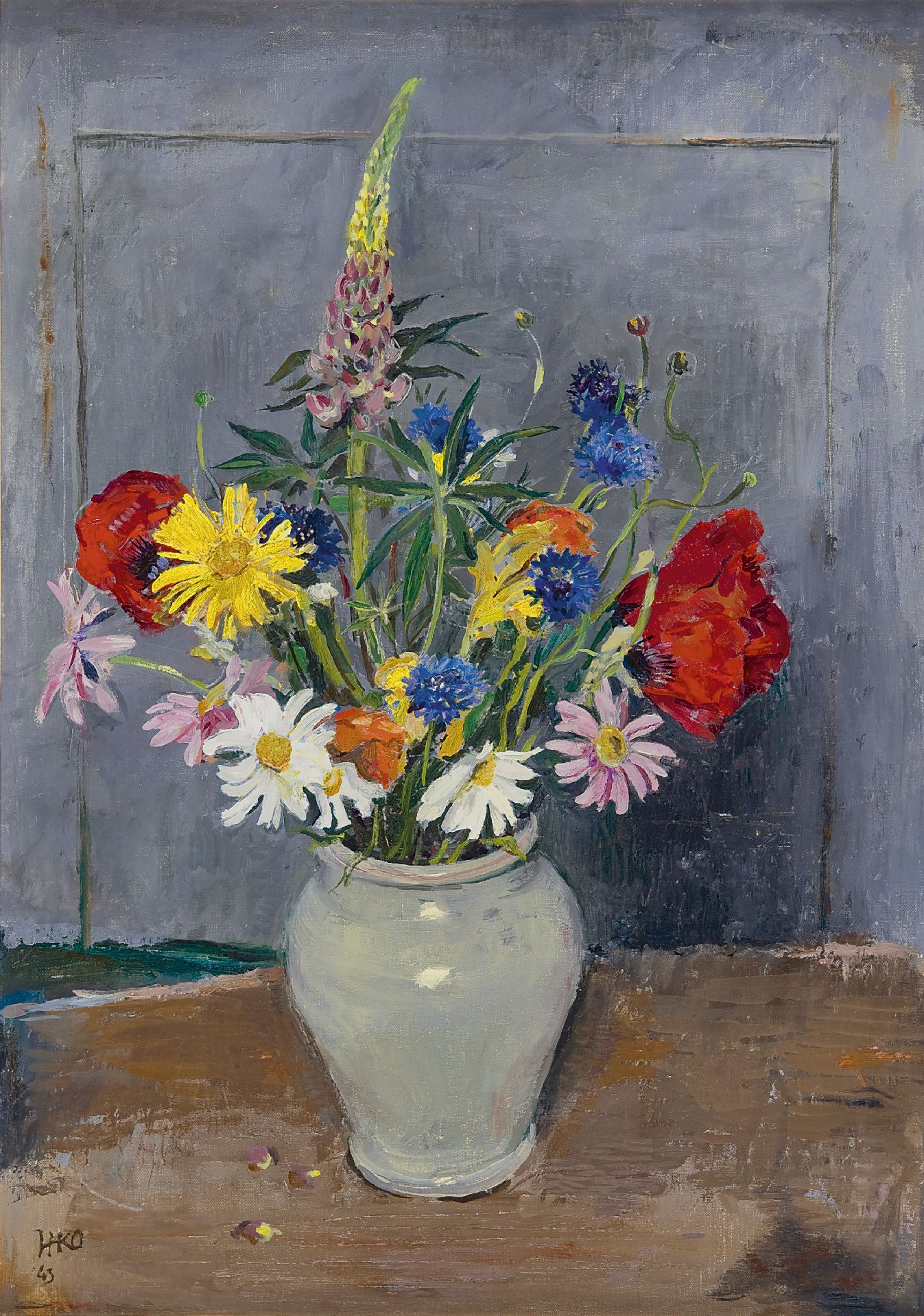 Harm Kamerlingh Onnes kunstwerk • schilderij • voorheen te koop Zomerbloemen in grijze vaas