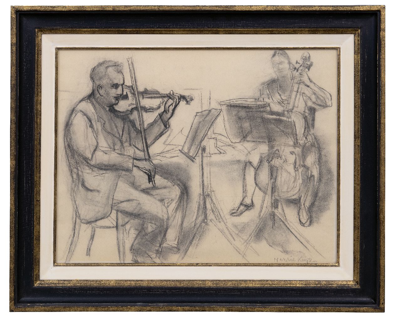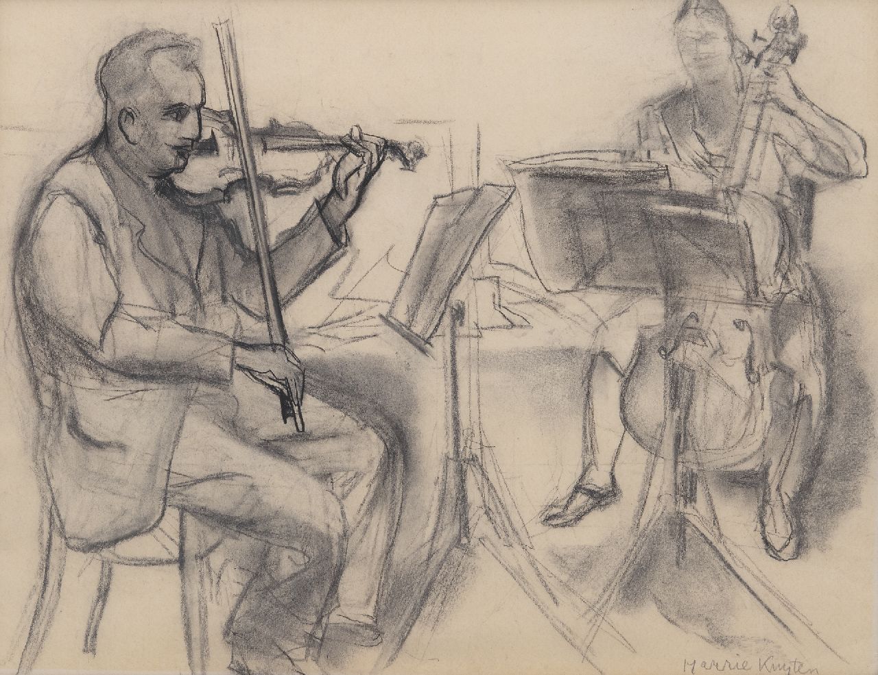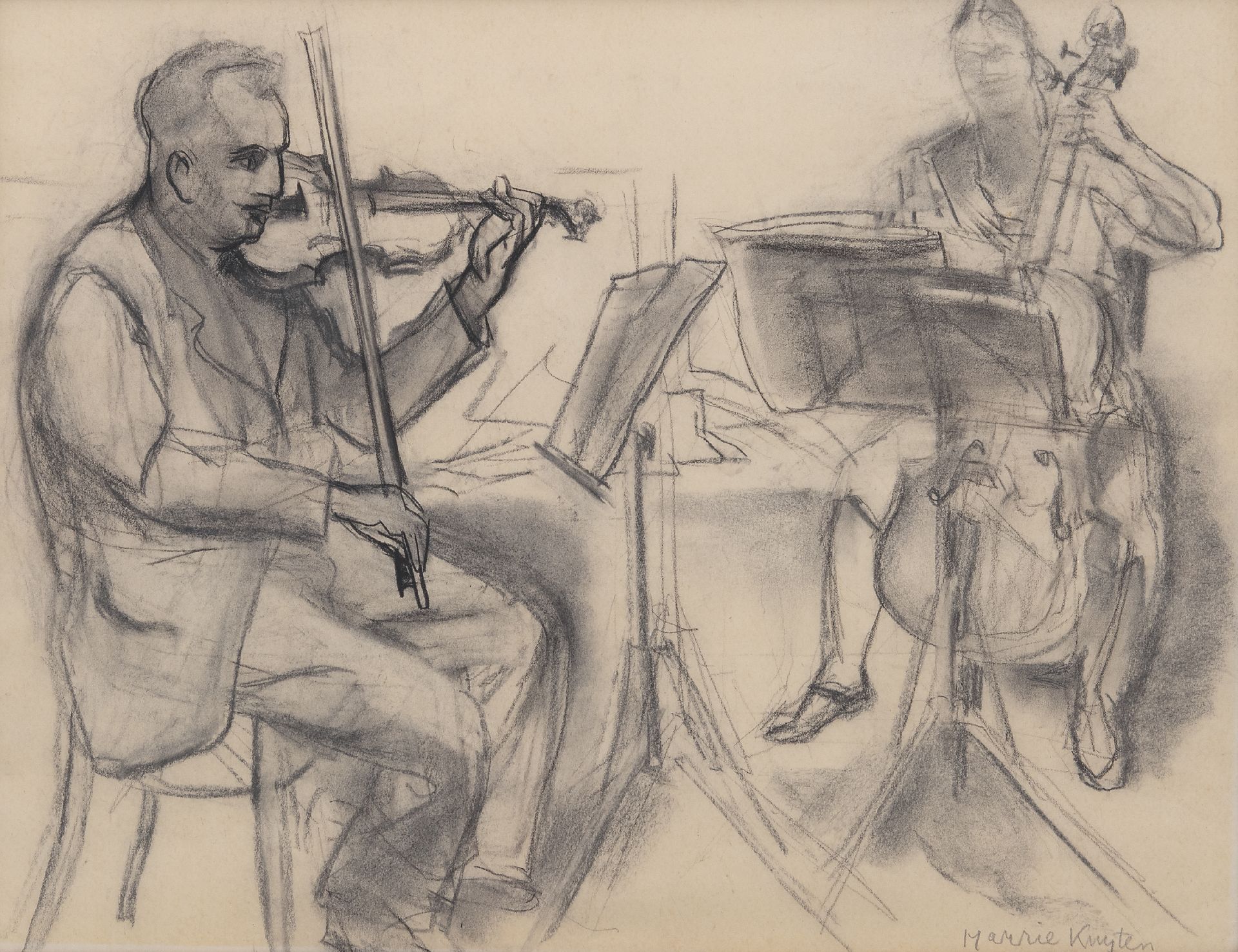 Harrie Kuijten kunstwerk • aquarel • tekening • te koop Spelende violist en cellist