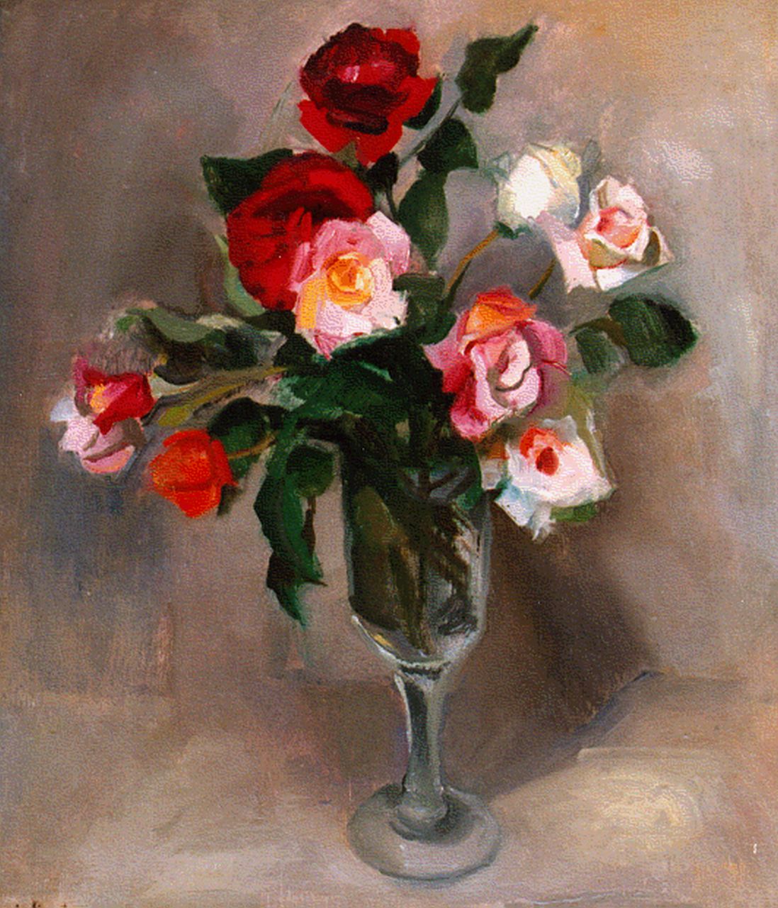 Harrie Kuijten kunstwerk • schilderij • voorheen te koop Rozen in een glazen vaas