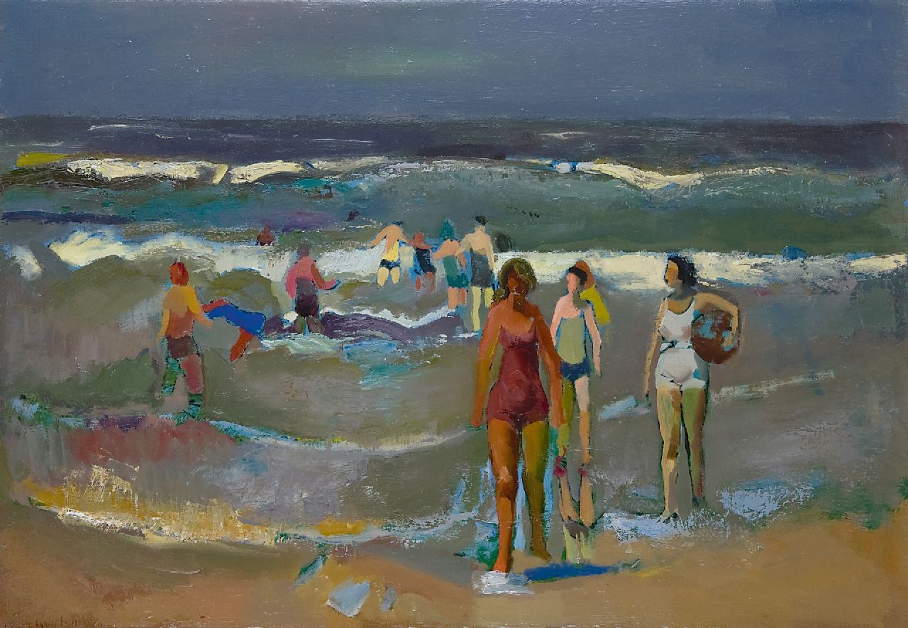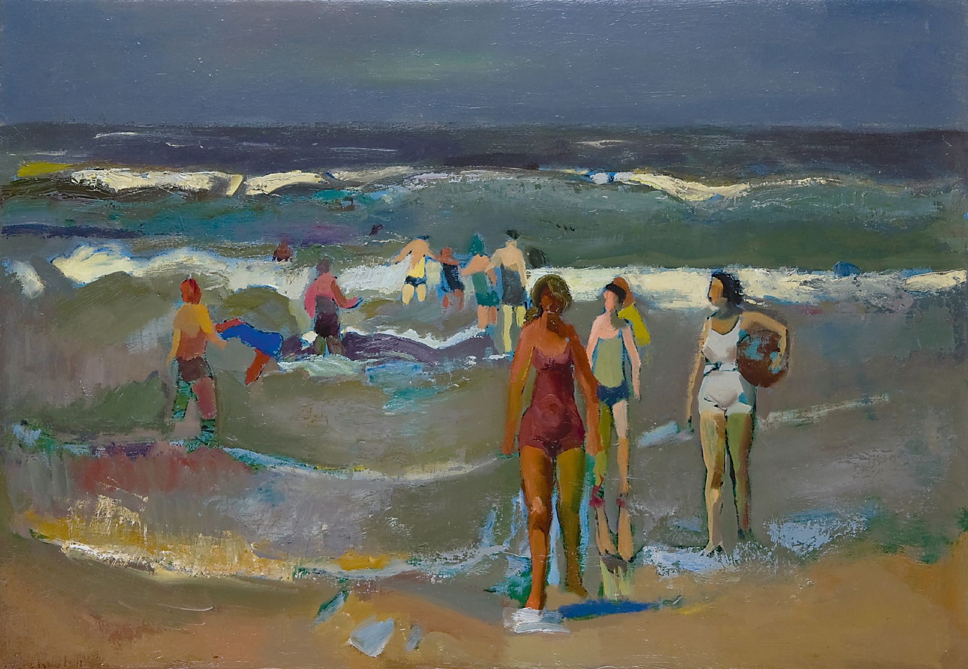 Harrie Kuijten kunstwerk • schilderij • voorheen te koop Strand met baders