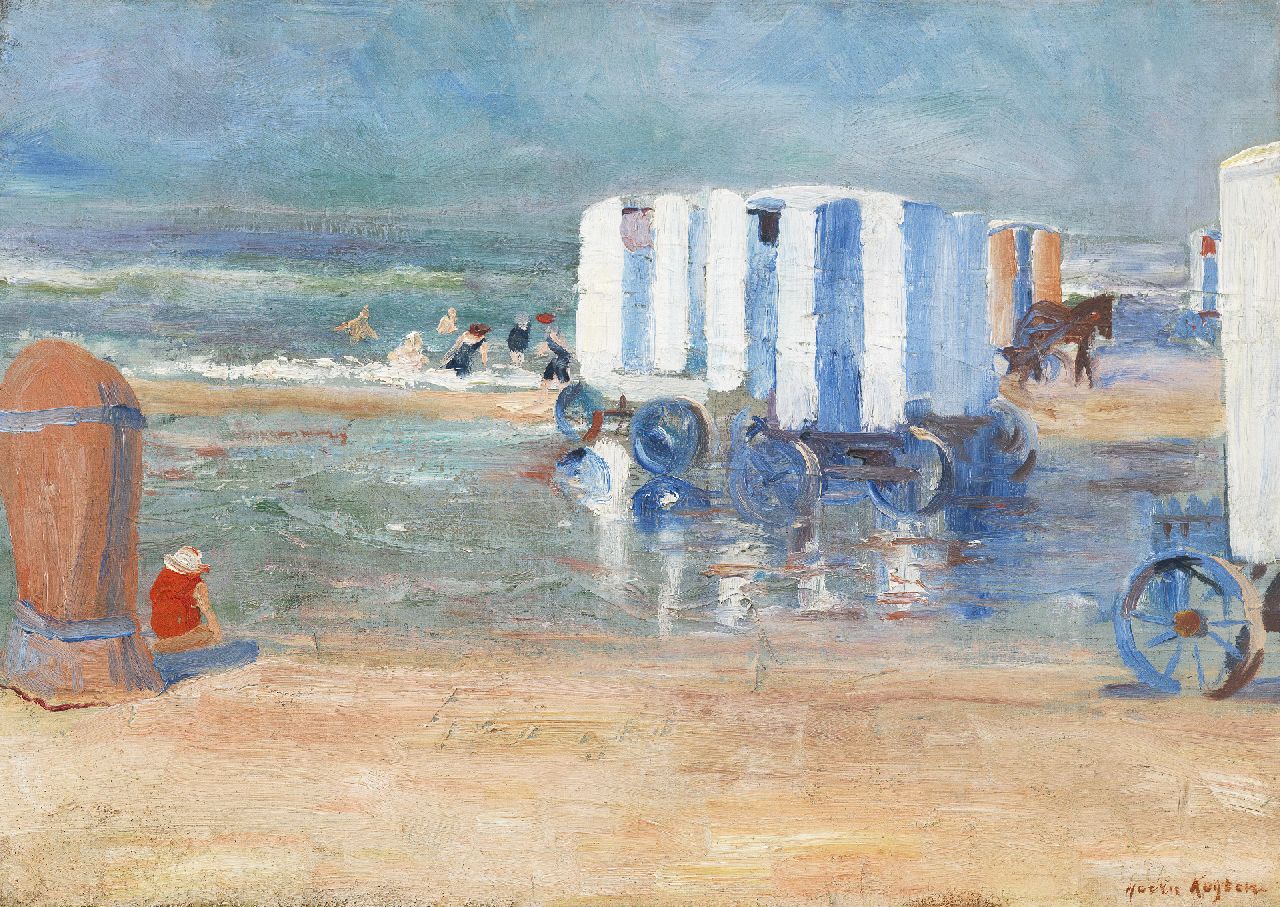 Kenmerkend voor het werk van Harrie Kuijten is zijn diversiteit aan stijlen, waarbij hij in geen enkele stroming wenste ingedeeld te worden. Hij was altijd al geboeid door de menselijke figuur en naast zijn voorkeur voor het naakt, dat hij zijn hele leven zou blijven schilderen, beeldde hij naast feesten en kleurige marktscènes ook strandgezichten af, waarin hij de zonnige kant van het leven toont. Naast het succes dat hij vanaf 1915 had met zijn naaktfiguren verwierf de schilder ook met zijn 'strandjes' grote bekendheid. Ze zijn doorgaans niet groot van formaat en zonder uitzondering in snelle, rake streken neergezet: momentopnames van het badleven aan de Hollandse kust. Prachtig is de manier waarop hij de luchten schildert en de beweging van de zee met zijn aanrollende golven, met in de branding de kleurige baders. Vanaf de jaren dertig vertoont het werk van Kuijten verwantschap met de Bergense School in de donkere, in forse vormen neergezette Bergense landschappen en stillevens.