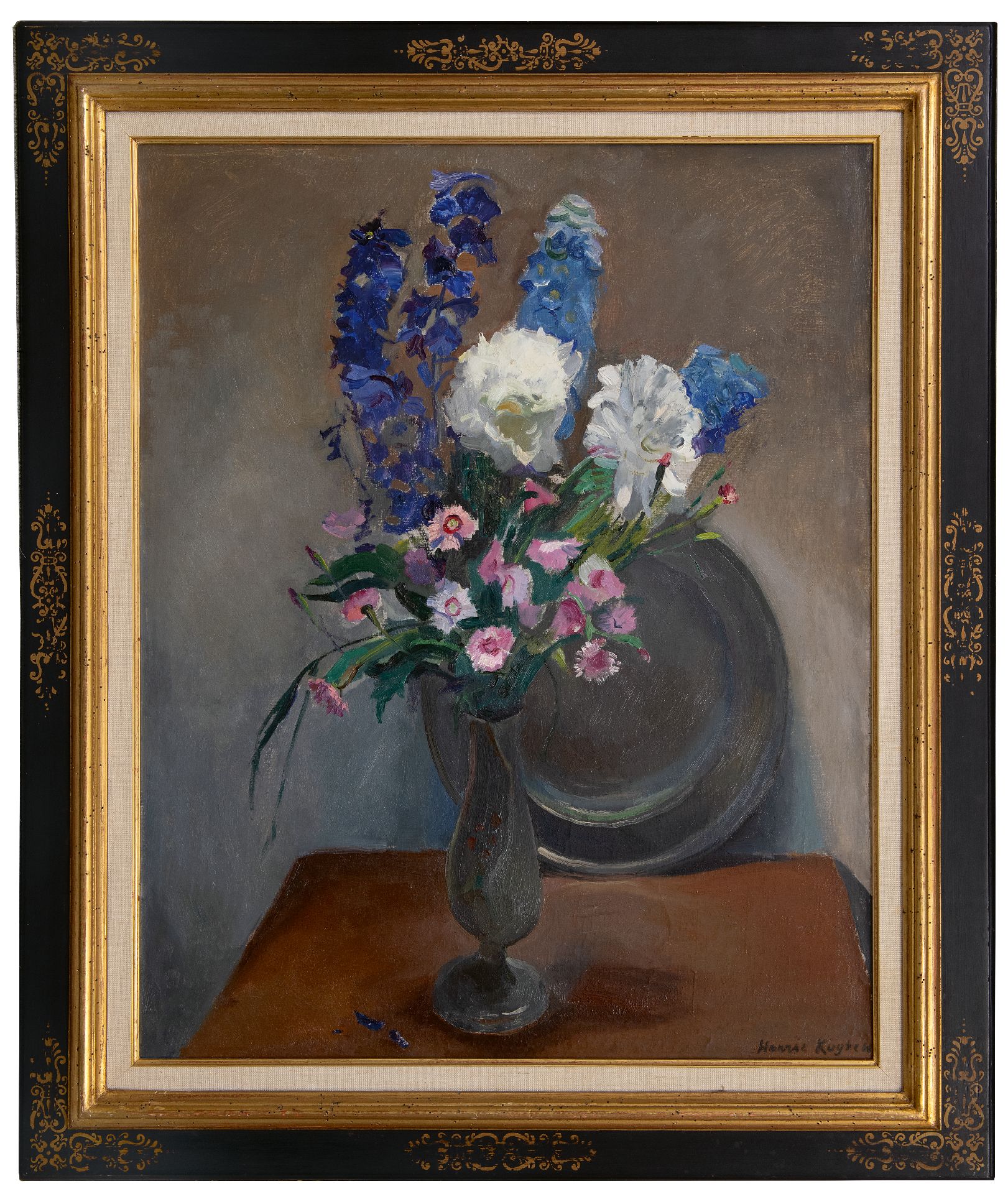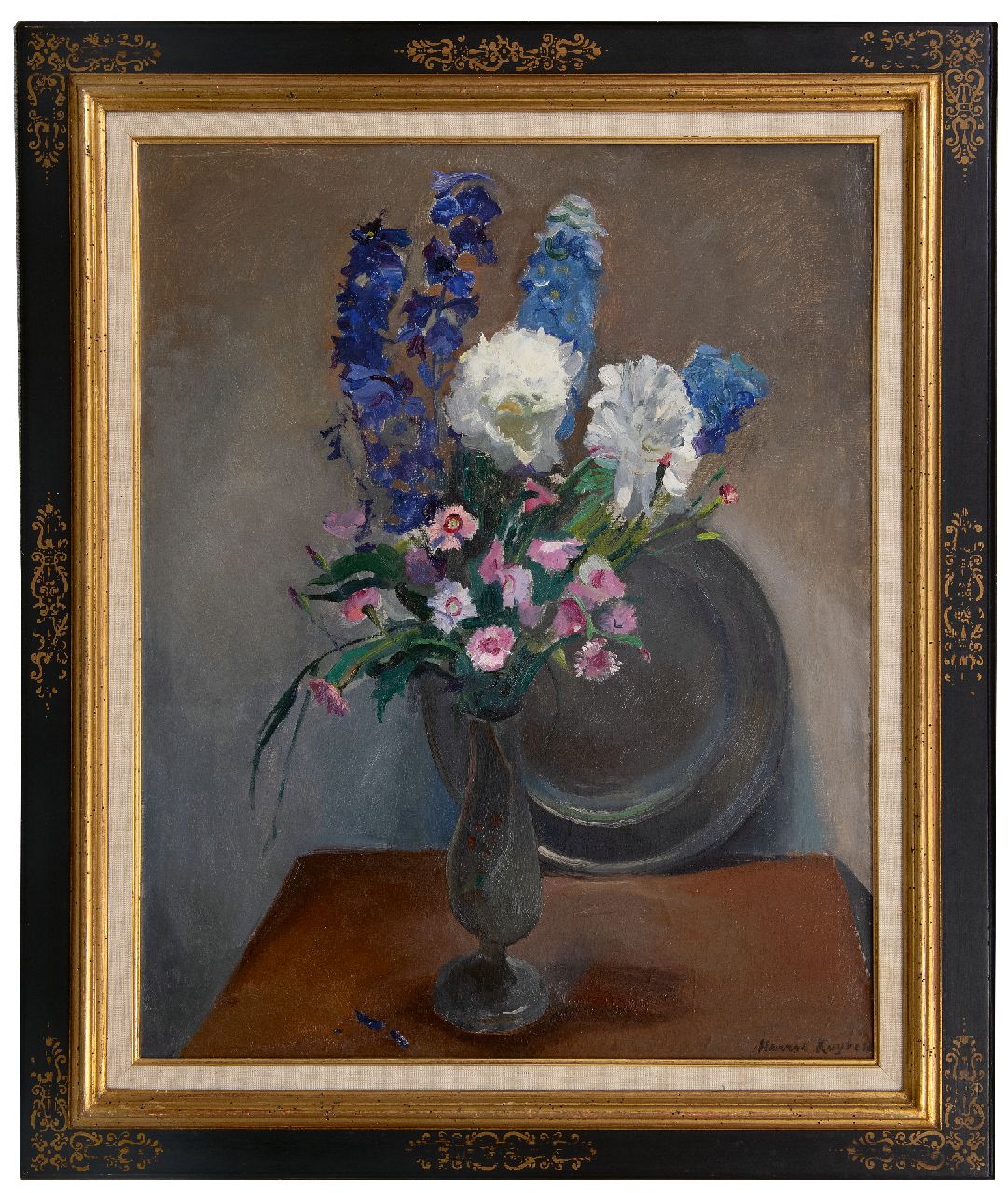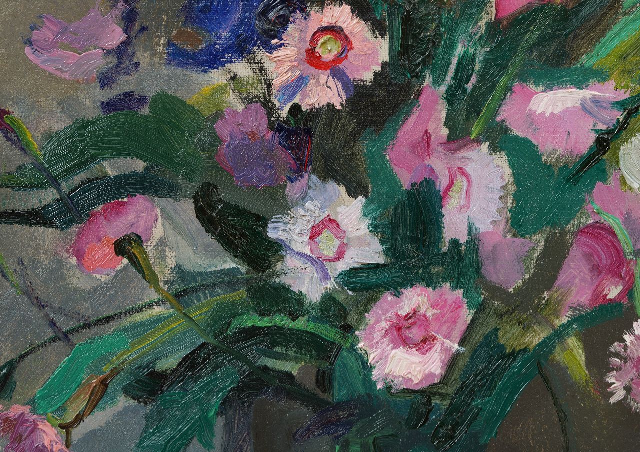 Harrie Kuijten kunstwerk • schilderij • te koop Tinnen vaas met zomerbloemen