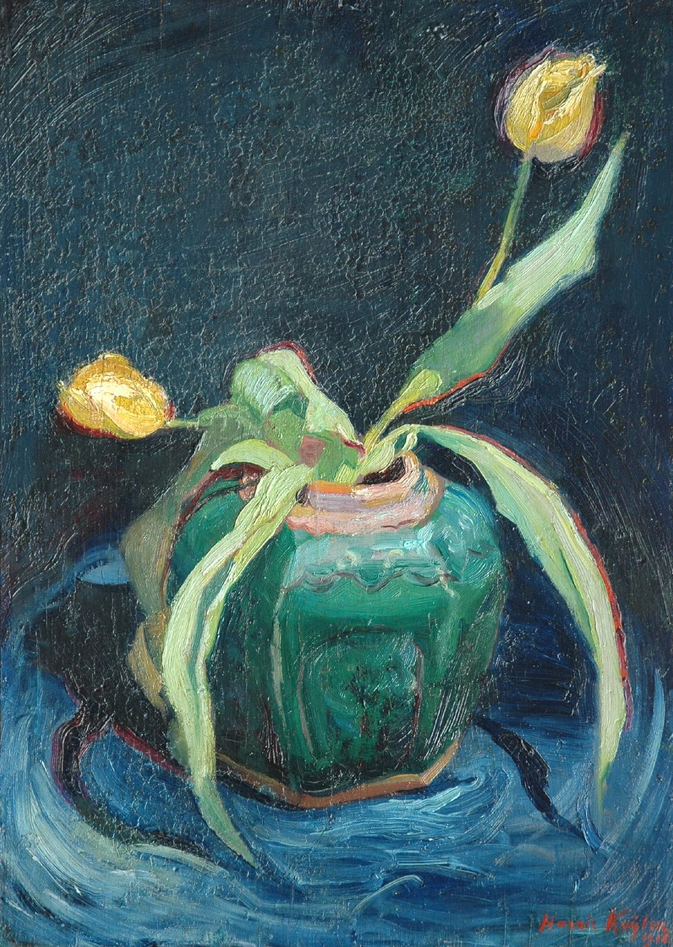 Harrie Kuijten kunstwerk • schilderij • voorheen te koop Tulpen in gemberpot