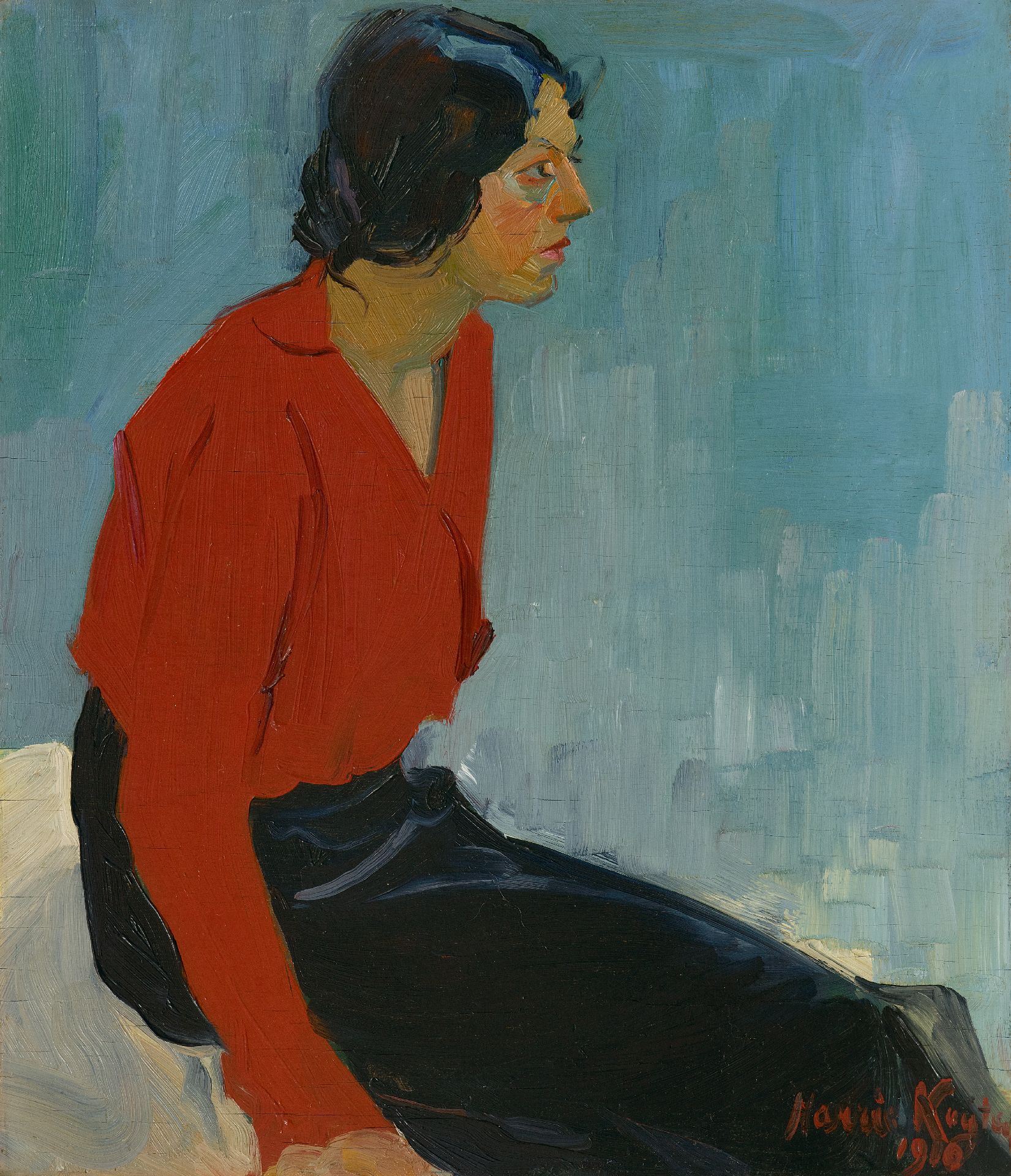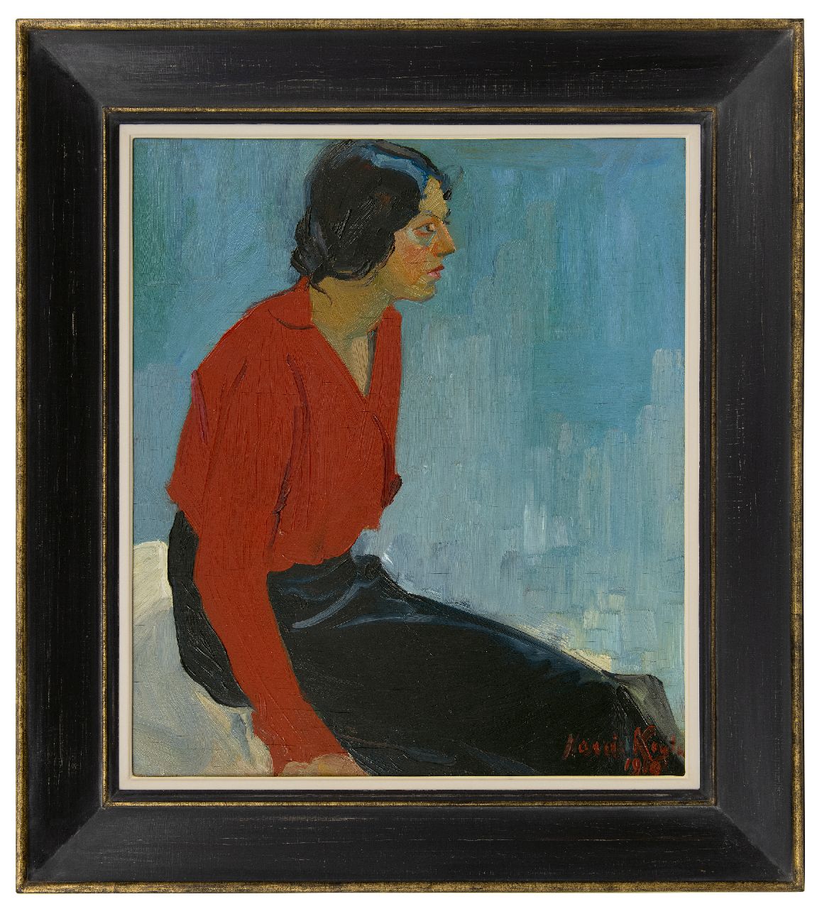 Harrie Kuijten kunstwerk • schilderij • voorheen te koop Vrouw in rode blouse
