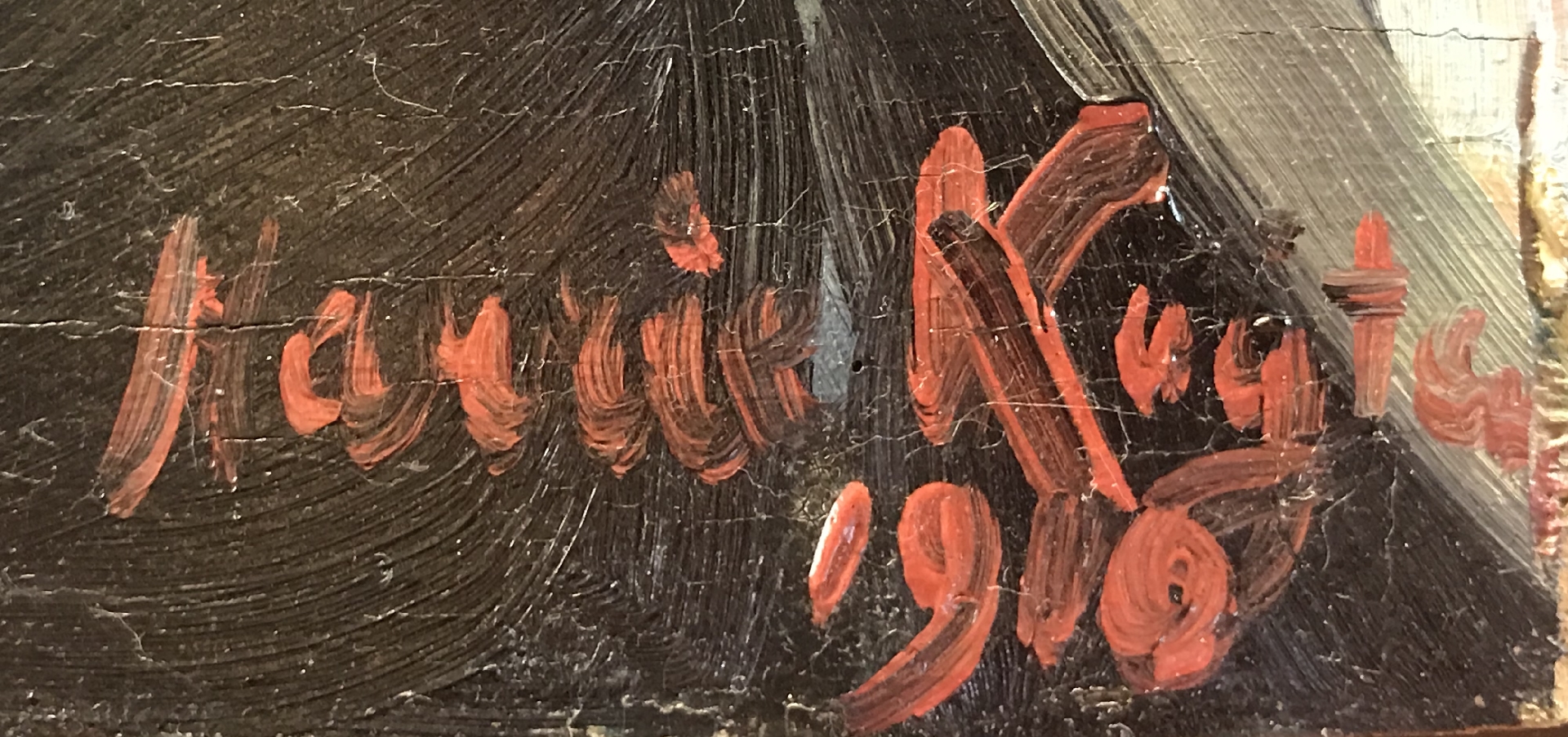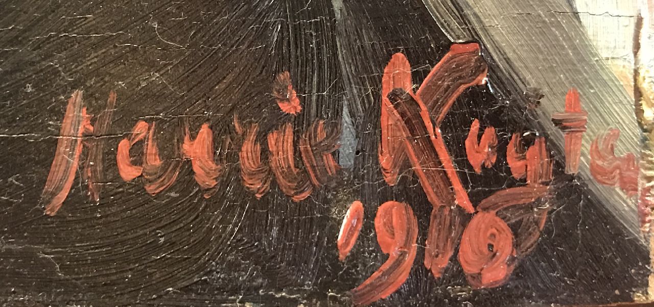 olieverf op paneel 57,1 x 49,5 cm, gesigneerd rechtsonder en gedateerd 1910