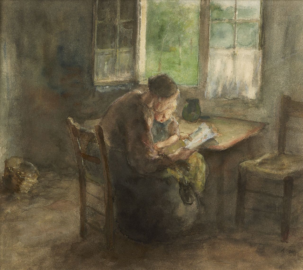 aquarel op papier 44,8 x 51,1 cm, gesigneerd rechtsonder