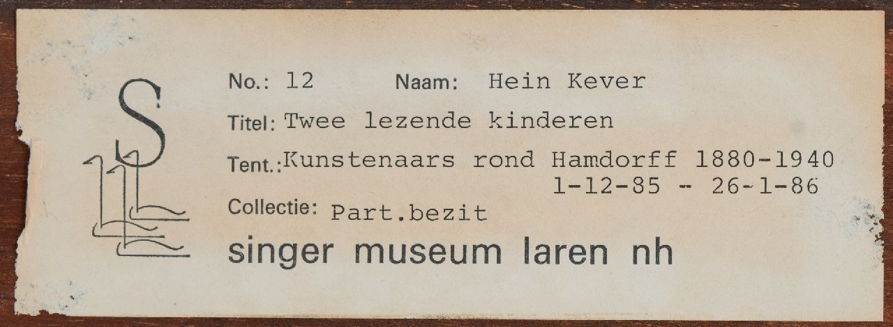 Hein Kever behoort tot de bekendste schilders van de Larense School. Hij werd in Amsterdam geboren, toonde al jong talent en kwam via Isaac Israels aan een leerplaats op het atelier van P.F. Greive. In 1878 vestigde Kever zich in het Gooi, waar hij raad en aanwijzingen kreeg van Anton Mauve. Voor de winters hield hij een atelier aan in Amsterdam. Kever werd vooral bekend door zijn in losse toets en harmonieuze kleuren geschilderde interieurs met figuren, bloemen, boeren en kinderen. Men bewonderde daarin de atmosfeer, de lichtval en kleuren, zoals helder groen en warm dieprood.