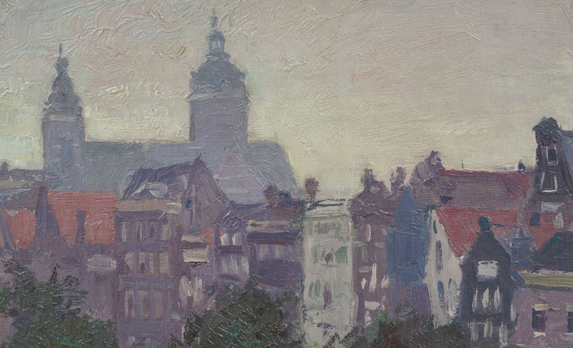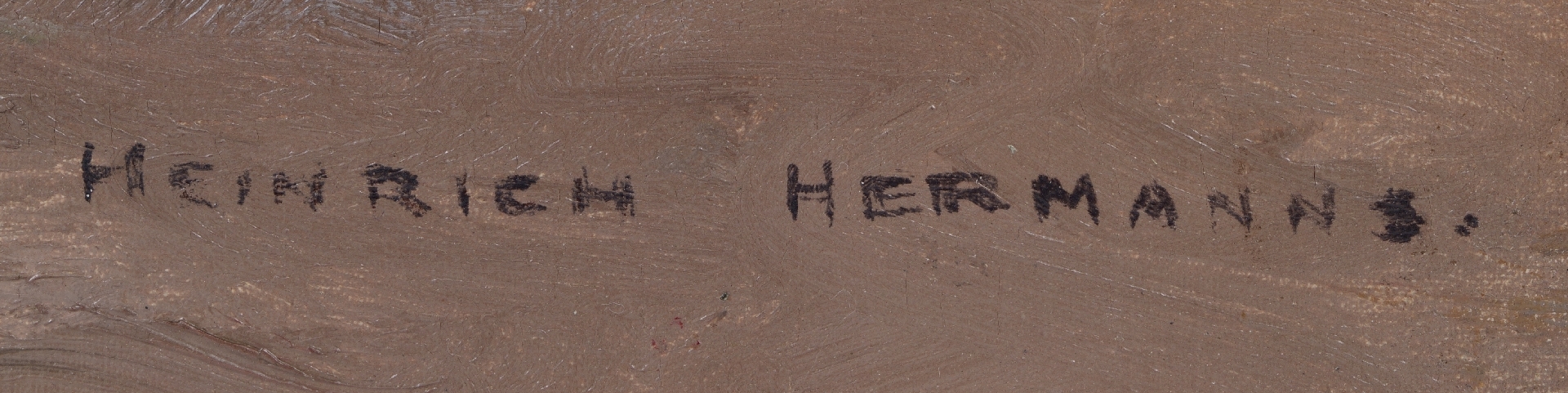 Net als zijn tijdgenoten van de ‘Düsseldorfer Malerschule’ voelde Henrich Hermanns zich sterk aangetrokken tot het impressionisme. Hij reisde veel door Europa, bezocht meermalen Katwijk en schilderde bij die gelegenheden ook stadsgezichten en bloemenmarkten van Amsterdam en Dordrecht. Ook zijn geboortestad bracht hem kleurige en levendige motieven. Na 1900 wordt zijn coloriet uitgesproken en streeft hij in zijn stadsgezichten steeds meer naar de uitbeelding van licht en atmosfeer.