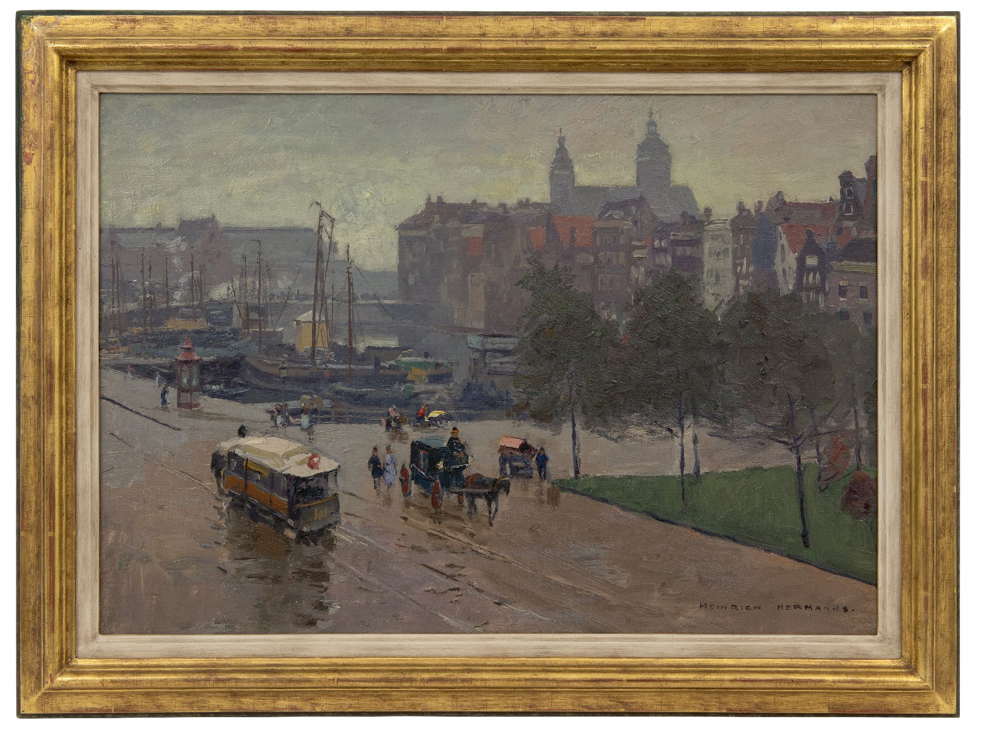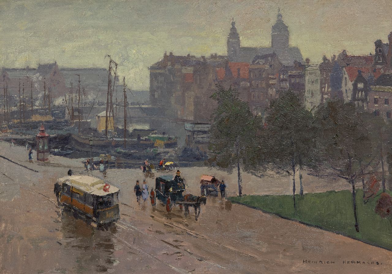 Heinrich Hermanns kunstwerk • schilderij • voorheen te koop Het Damrak, Amsterdam
