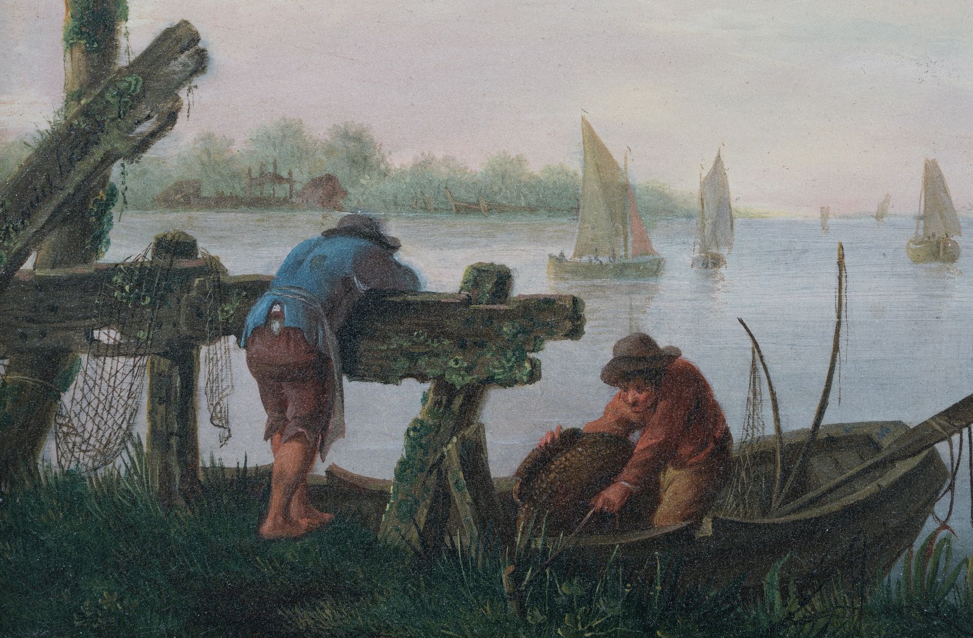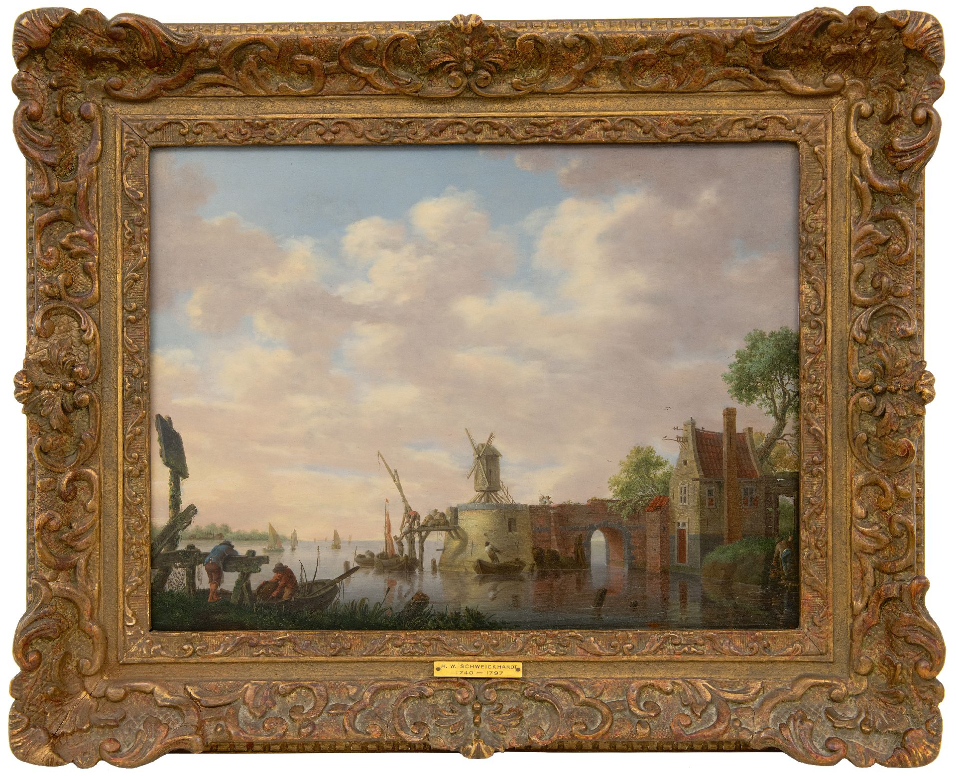 Heinrich Wilhelm Schweickhardt kunstwerk • schilderij • te koop Hollands riviergezicht met vissers