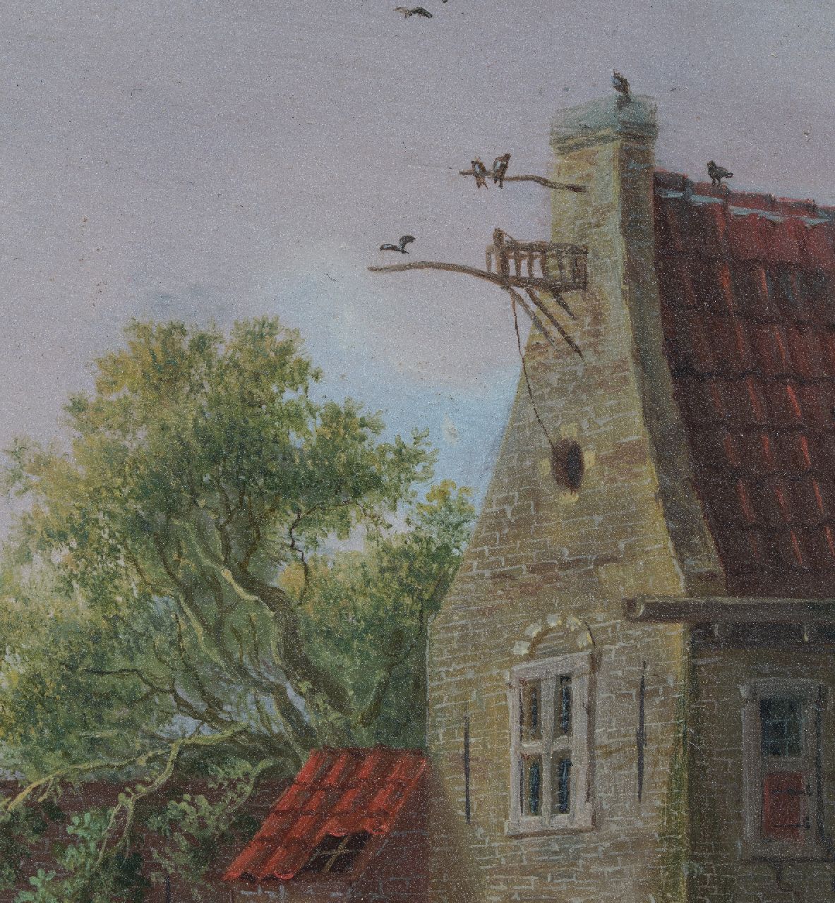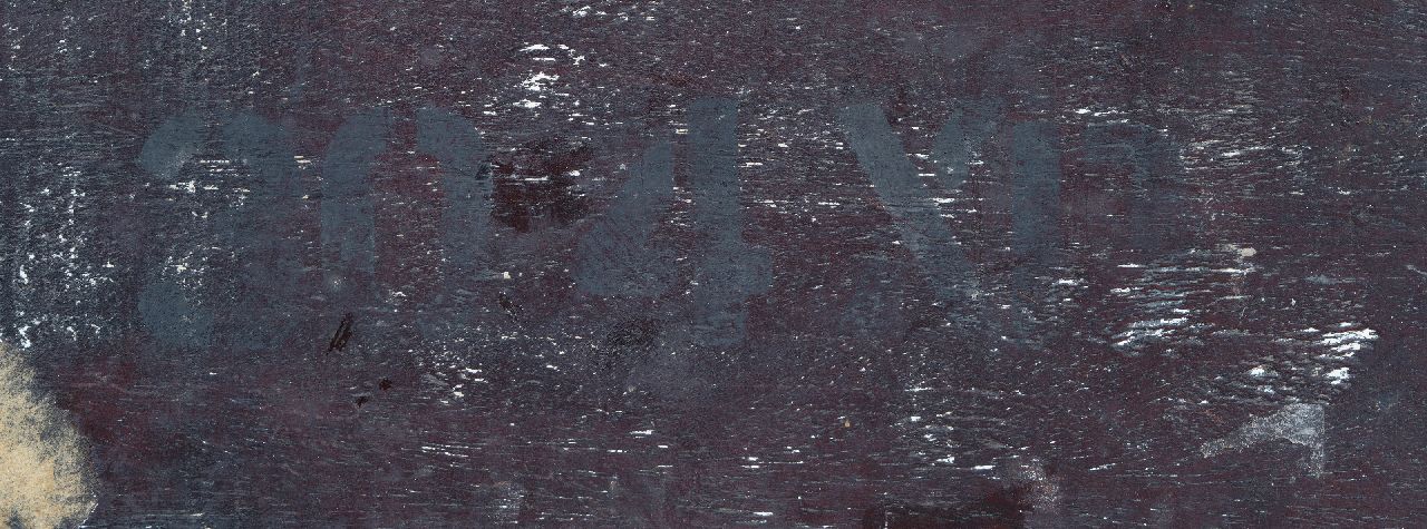olieverf op paneel 30,8 x 42,2 cm, gesigneerd linksonder op hek