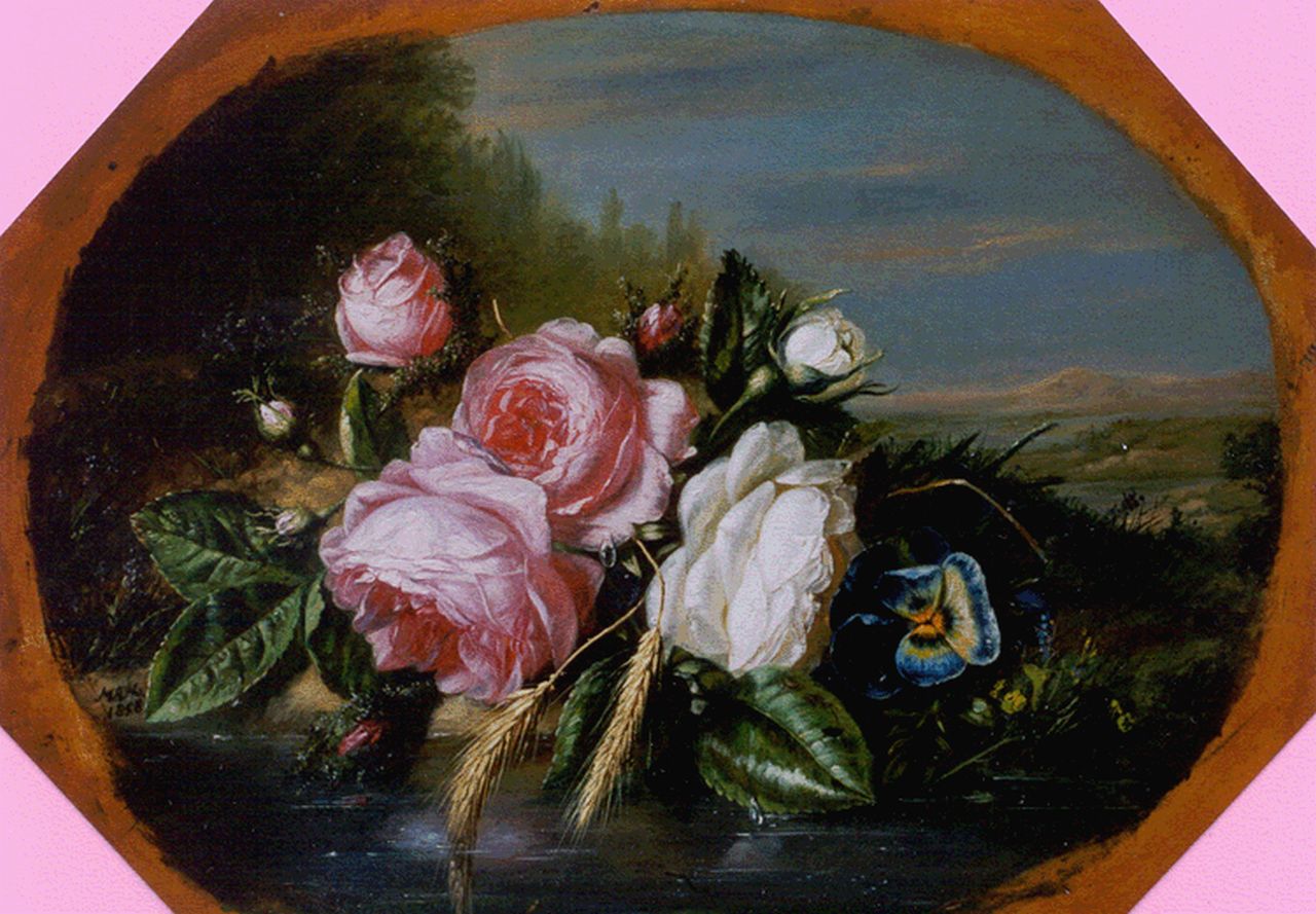 Hélène Hamburger kunstwerk • schilderij • voorheen te koop Boeket rozen aan de waterkant
