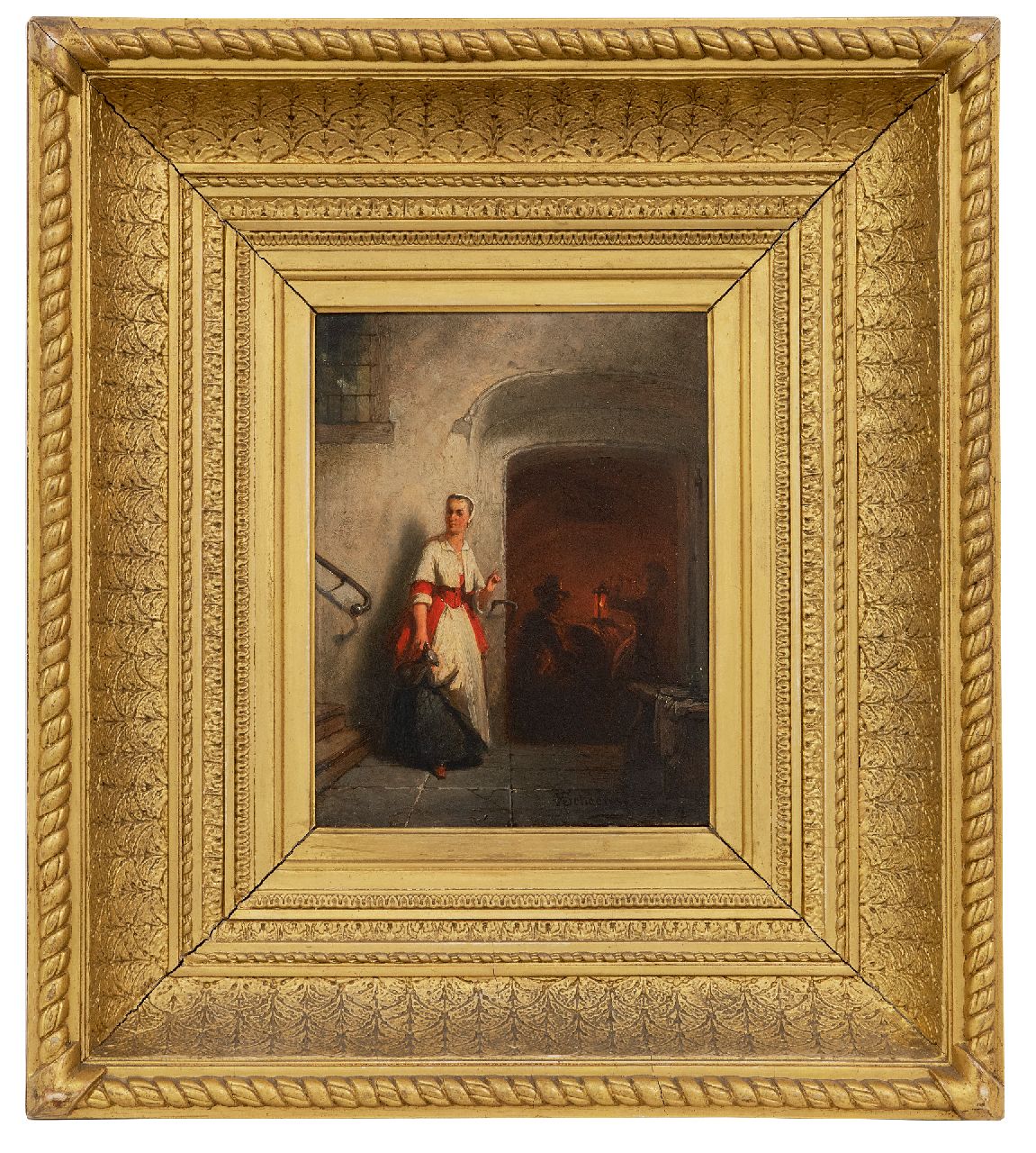 olieverf op paneel 19,0 x 14,7 cm, gesigneerd rechtsonder en gedateerd 1857