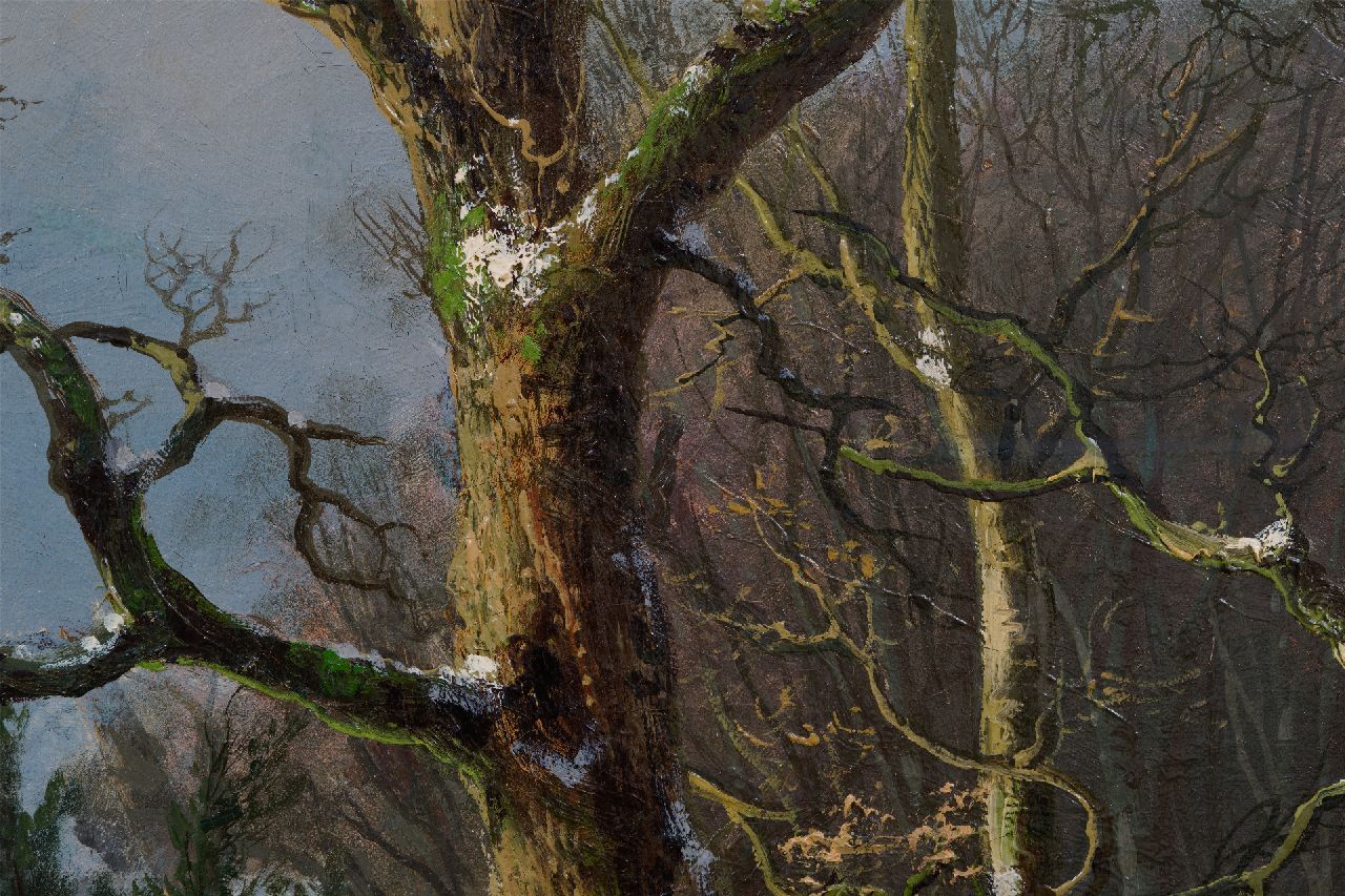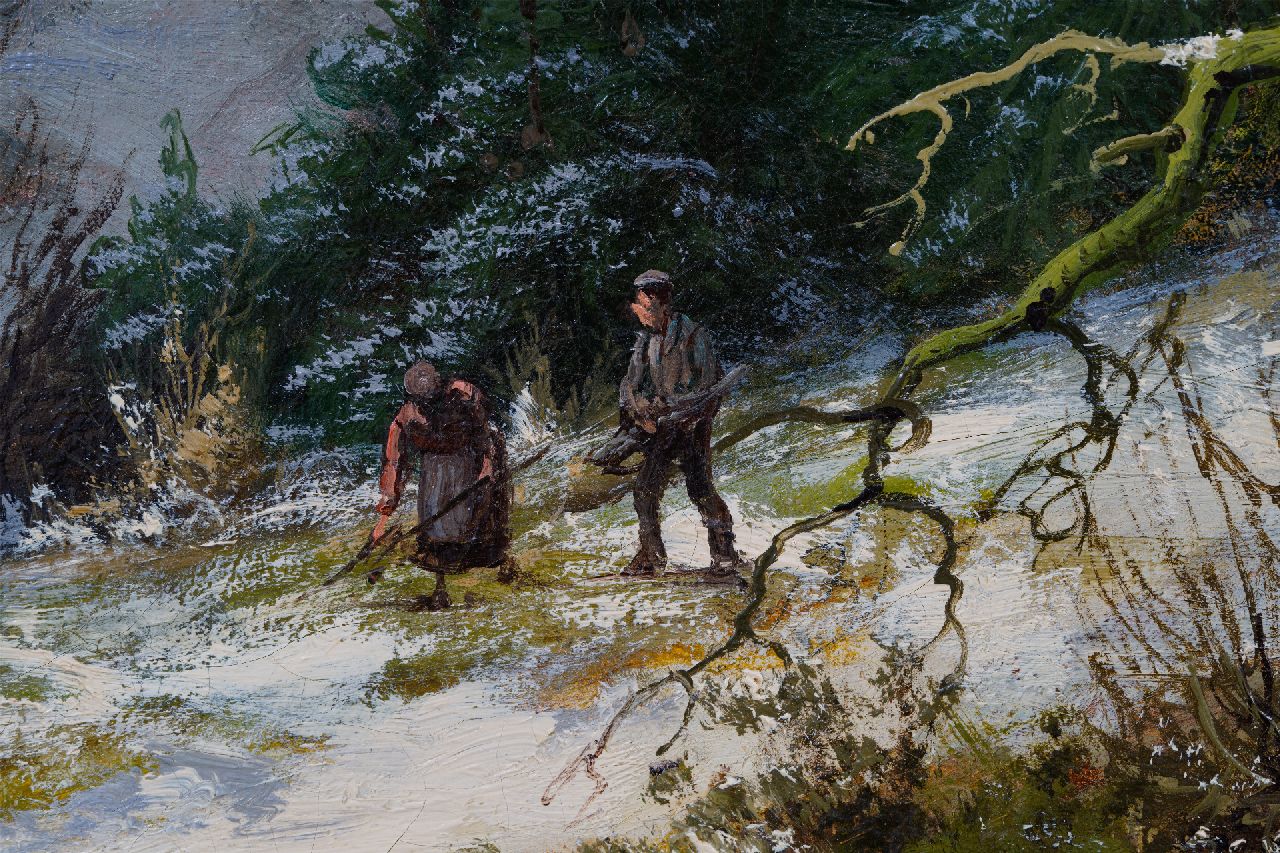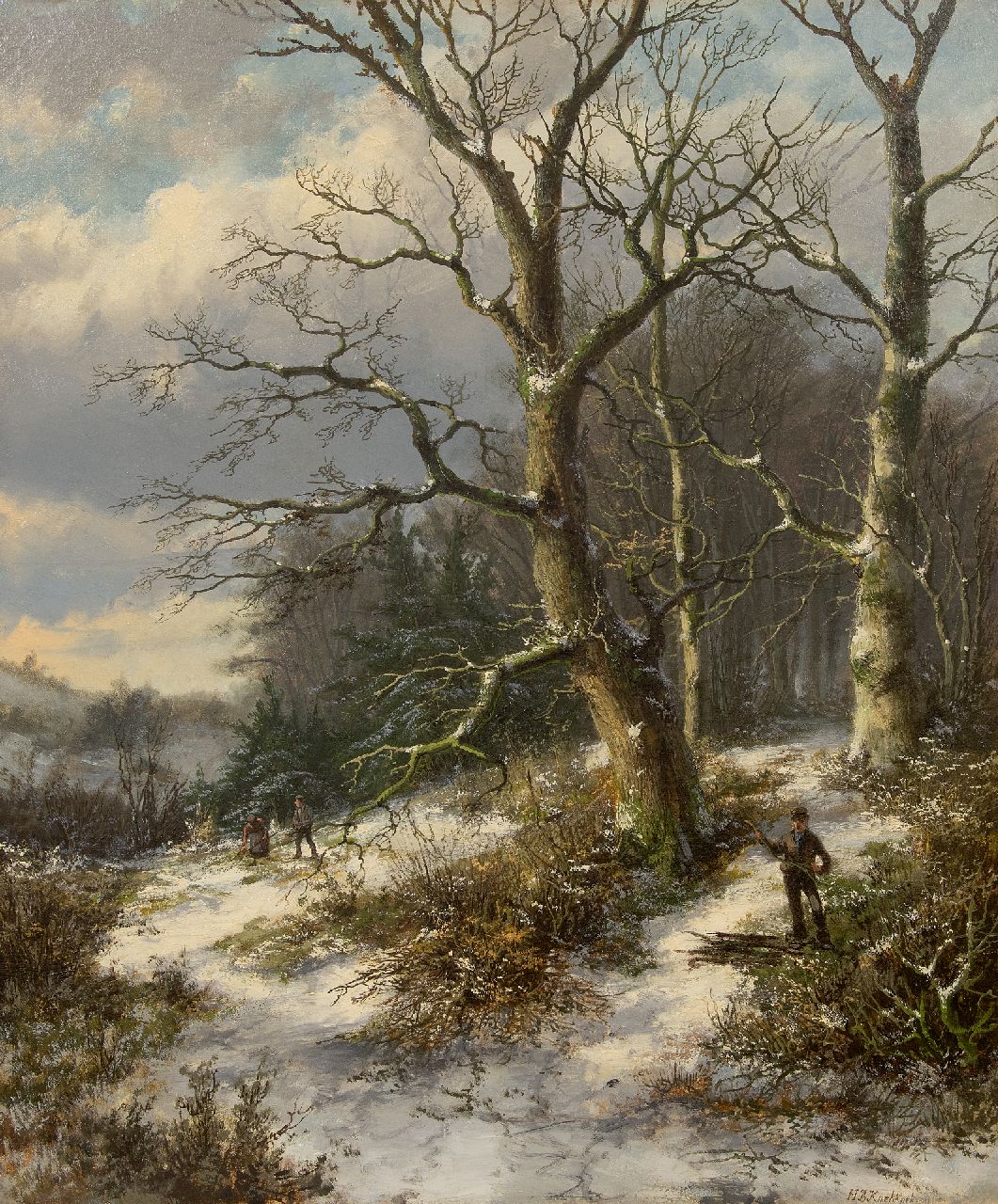 Hendrik Barend Koekkoek kunstwerk • schilderij • voorheen te koop Houtsprokkelaars in een besneeuwd bos