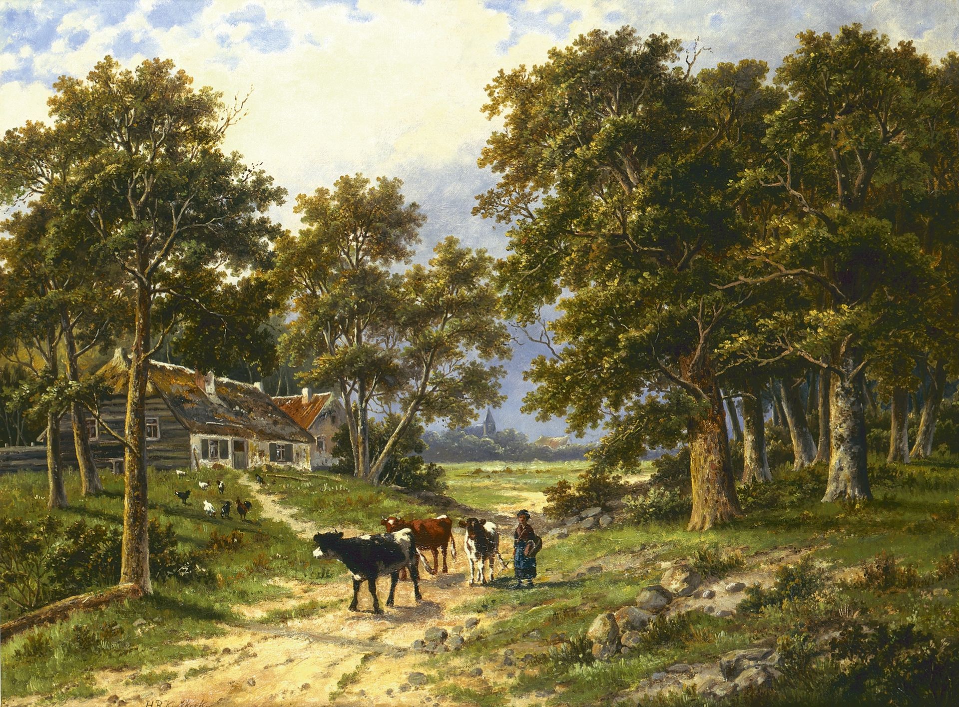 Hendrik Barend Koekkoek kunstwerk • schilderij • voorheen te koop Huiswaarts met het vee