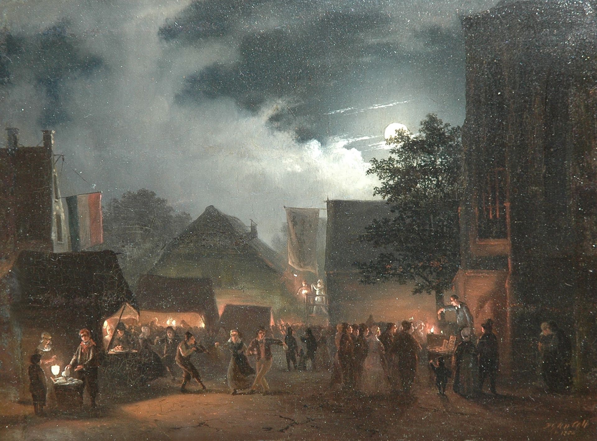 Hendrik Gerrit ten Cate kunstwerk • schilderij • voorheen te koop Markt bij maanlicht