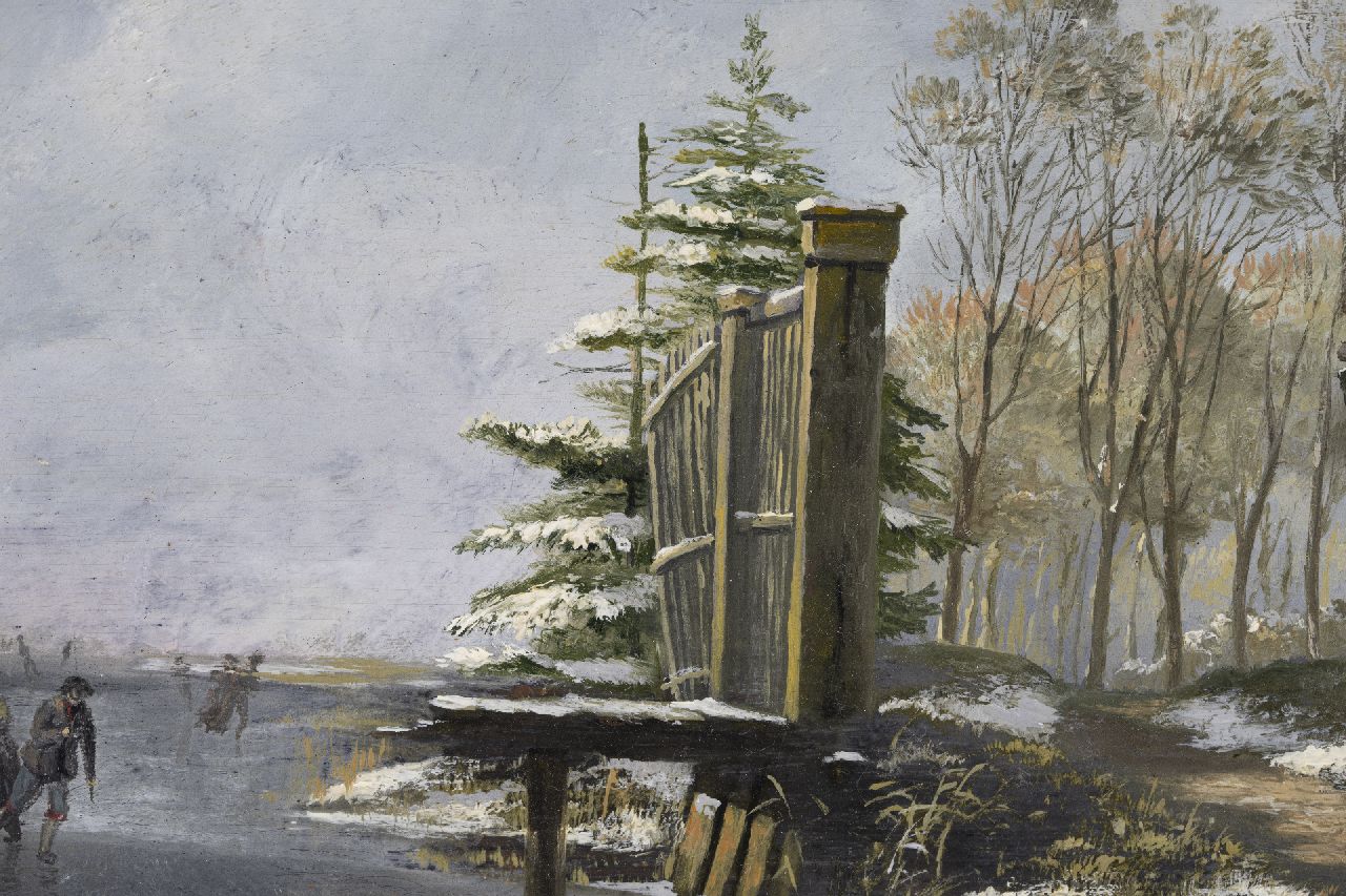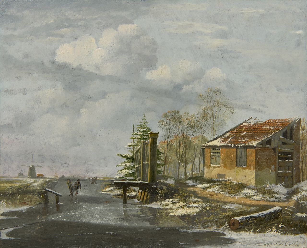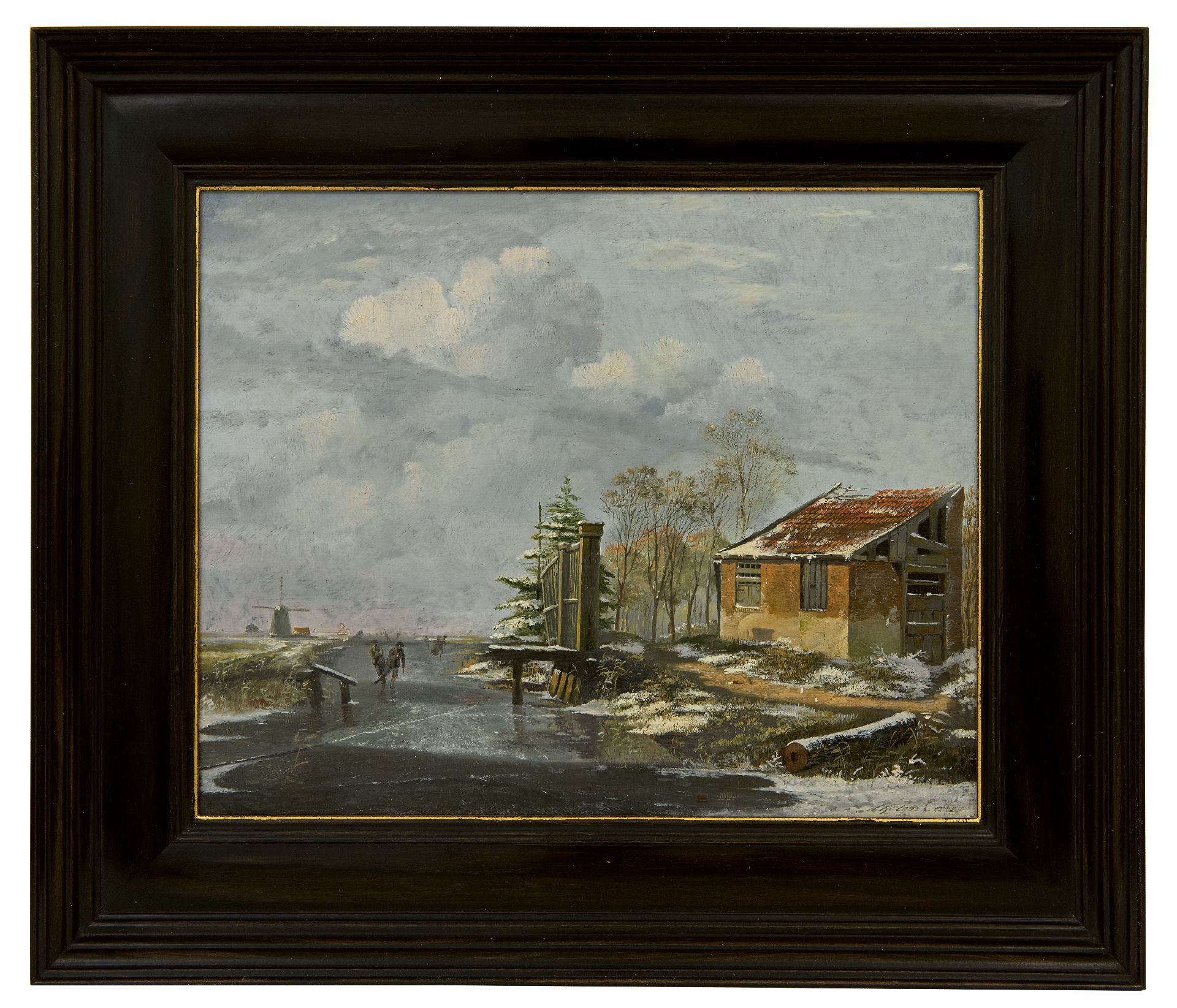 Hendrik Gerrit ten Cate kunstwerk • schilderij • te koop Schaatsers in een besneeuwd winterlandschap