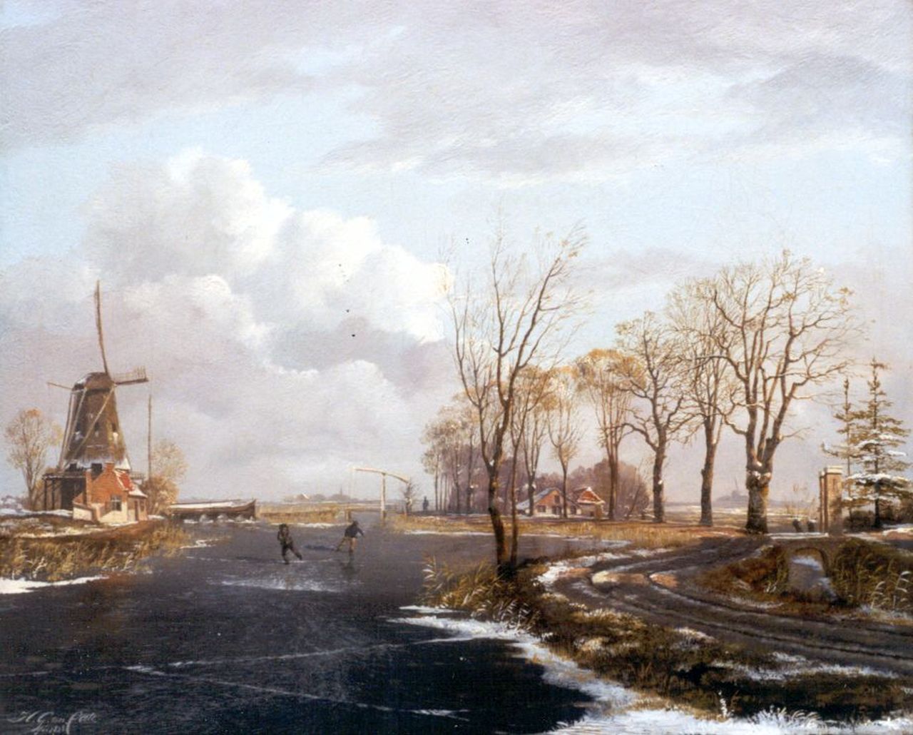 Hendrik Gerrit ten Cate kunstwerk • schilderij • voorheen te koop Schaatsers op het ijs