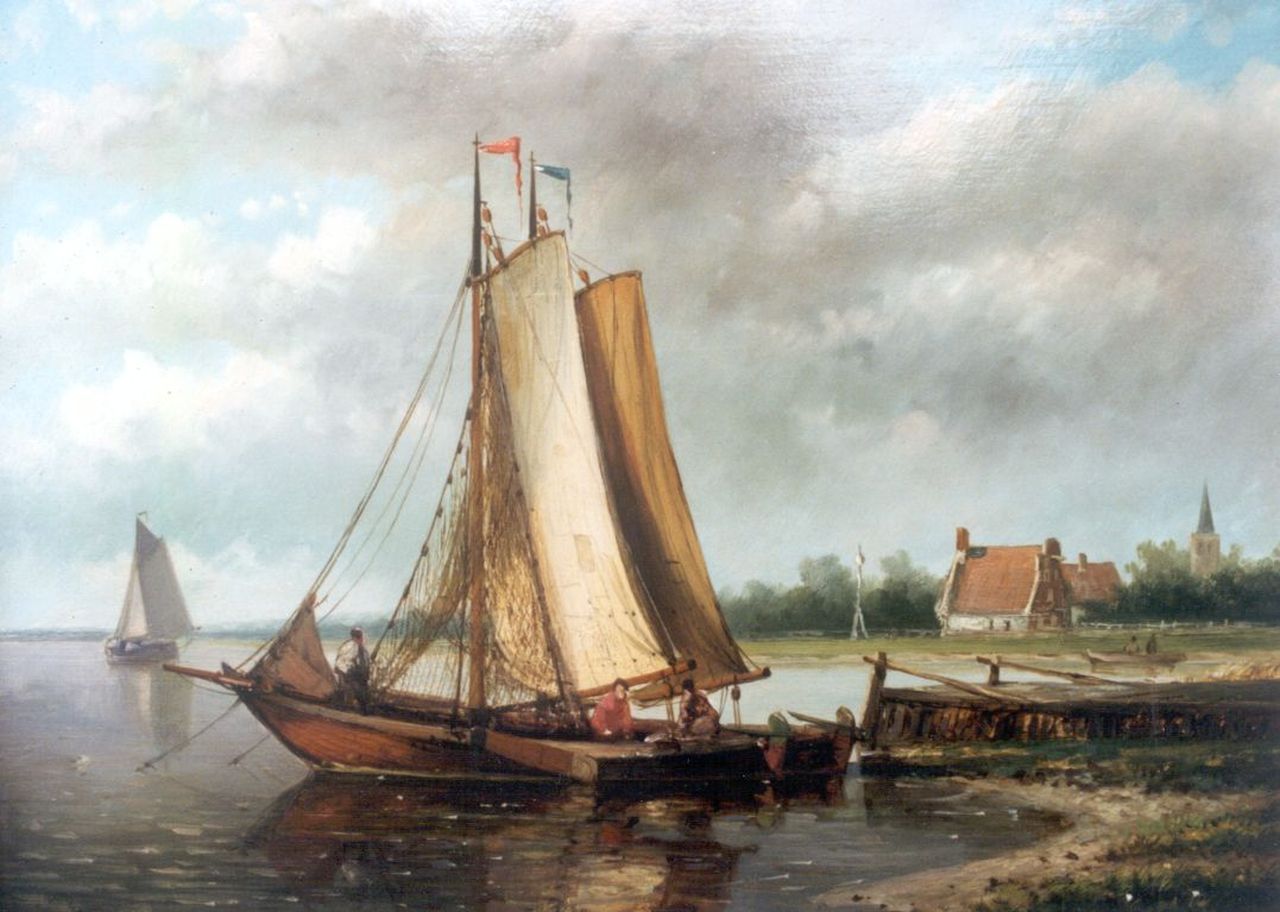 Hendrik Hulk kunstwerk • schilderij • voorheen te koop Afgemeerde vissersboten