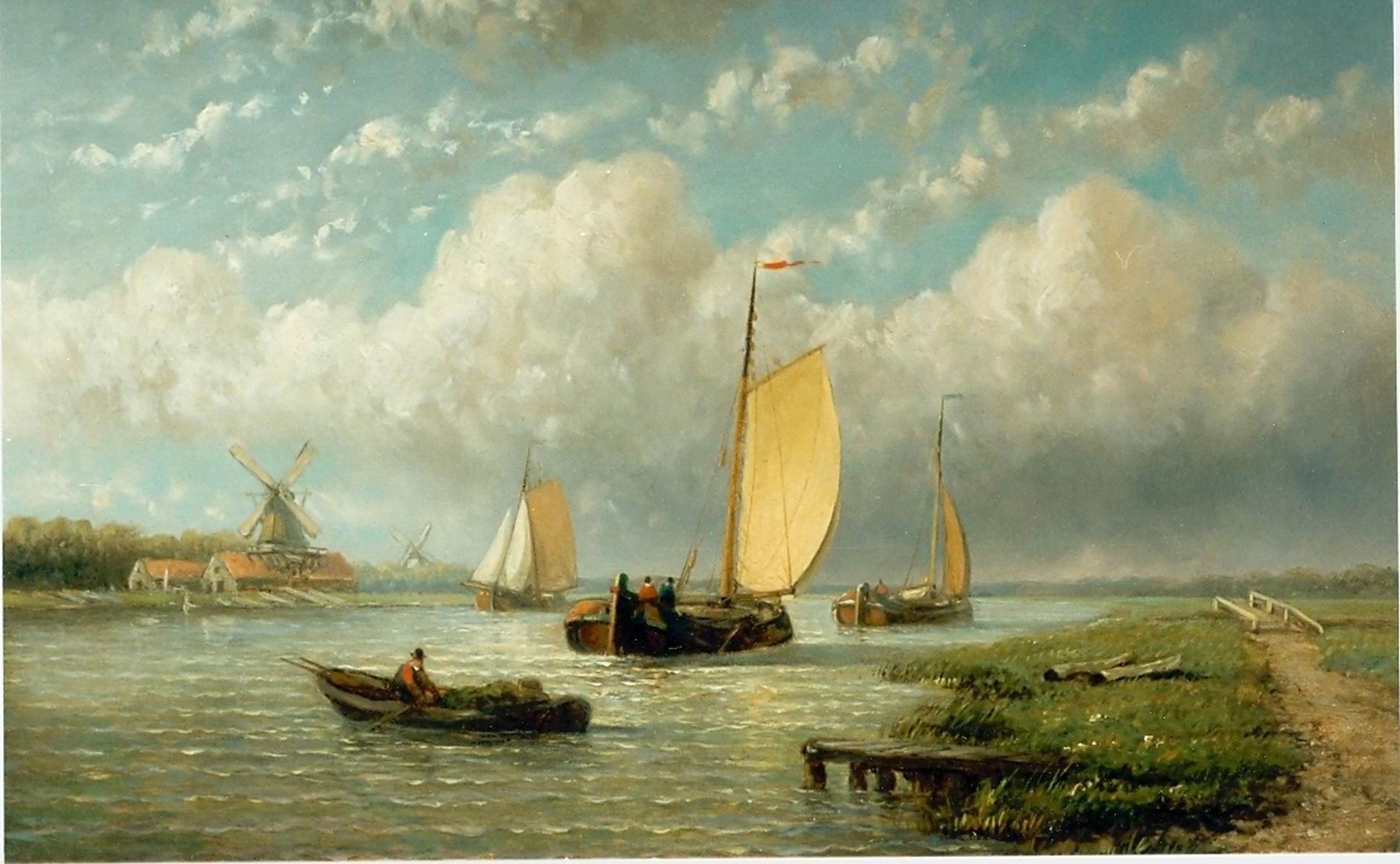 Hendrik Hulk kunstwerk • schilderij • voorheen te koop Tjalken op de rivier