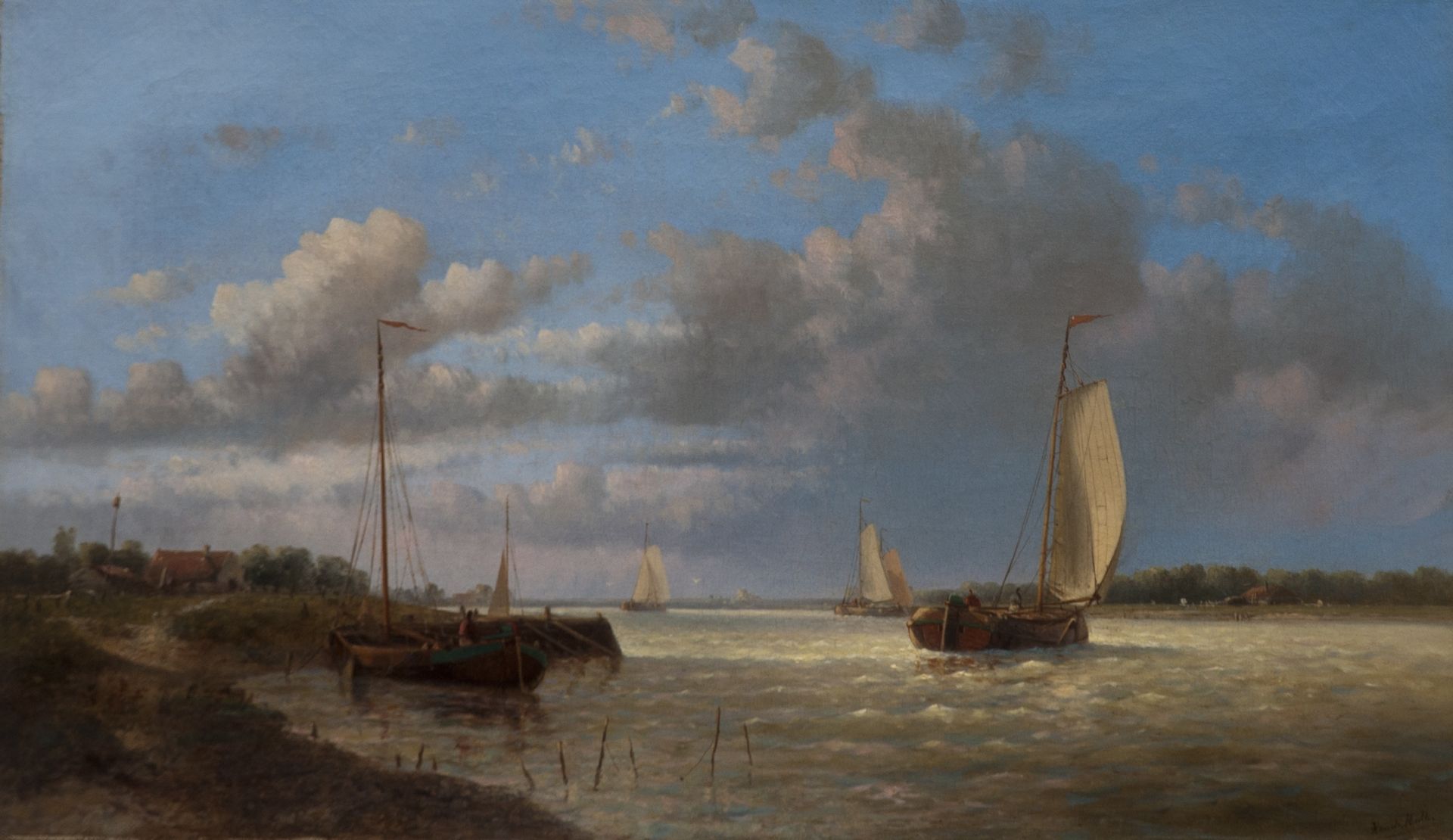 Hendrik Hulk kunstwerk • schilderij • voorheen te koop Zeilschepen op de rivier