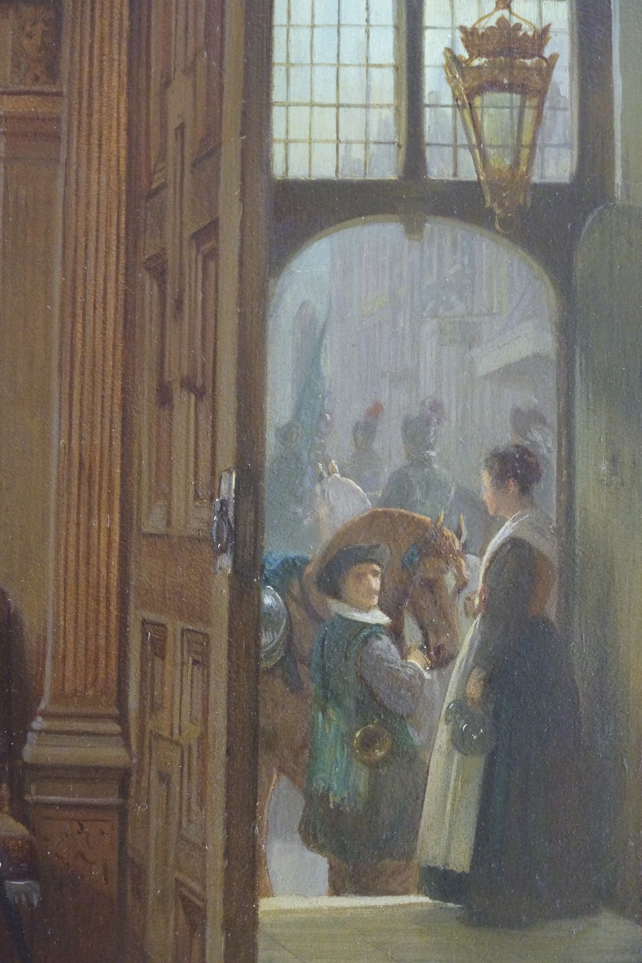 H.J. Scholten schilderde, aquarelleerde en etste anekdotische genrestukken, interieurs met elegante figuren en historische voorstellingen. Hij vormde zich als schilder in Amsterdam, als leerling van de destijds bekende genre- en portretschilder P.F. Greive. Zijn interieurs met figuren doen sterk denken aan die van de 17e-eeuwse schilder Pieter de Hoogh. Scholten schilderde ook voorstellingen uit de Hollandse geschiedenis, met de nadruk op de periode van de Gouden Eeuw. In 1872 werd hij conservator van de Teylers Stichting in Haarlem (het latere Teylers Museum).