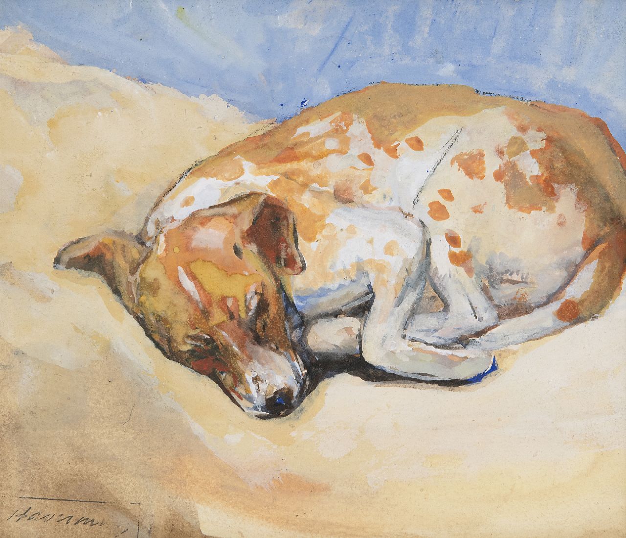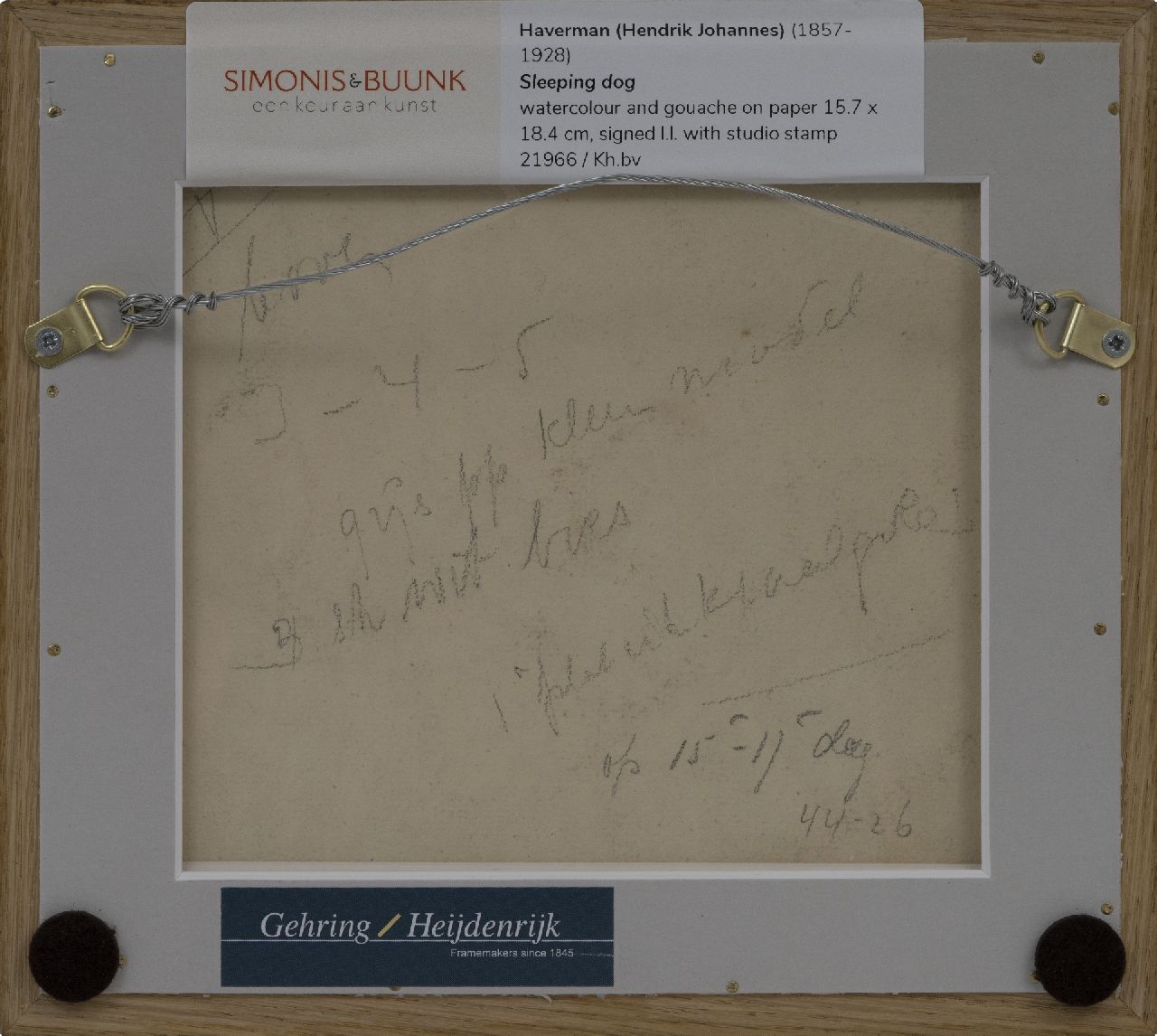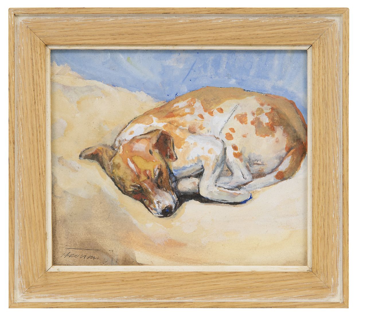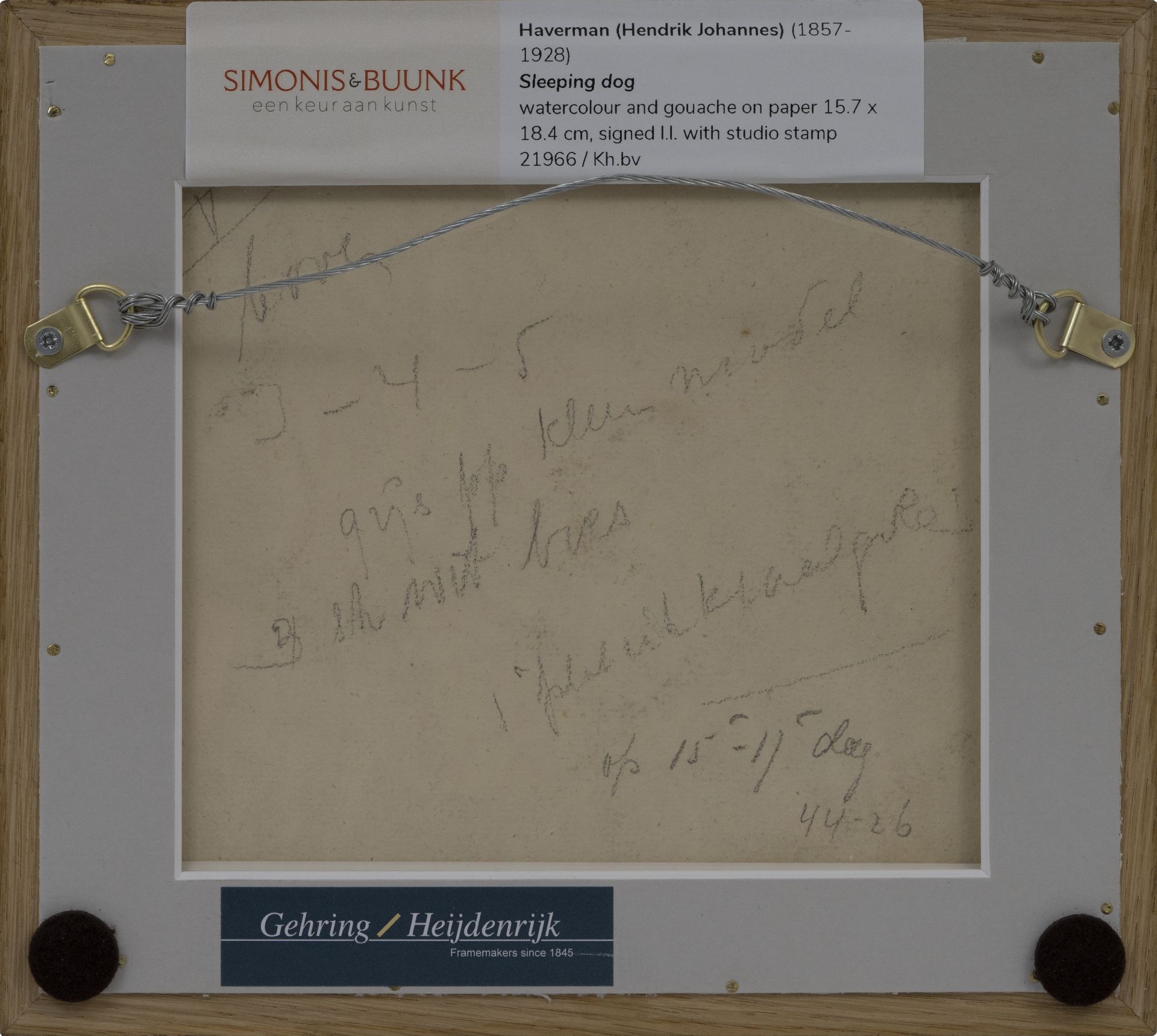 Hendrik Johannes Haverman kunstwerk • aquarel • tekening • voorheen te koop Slapend hondje