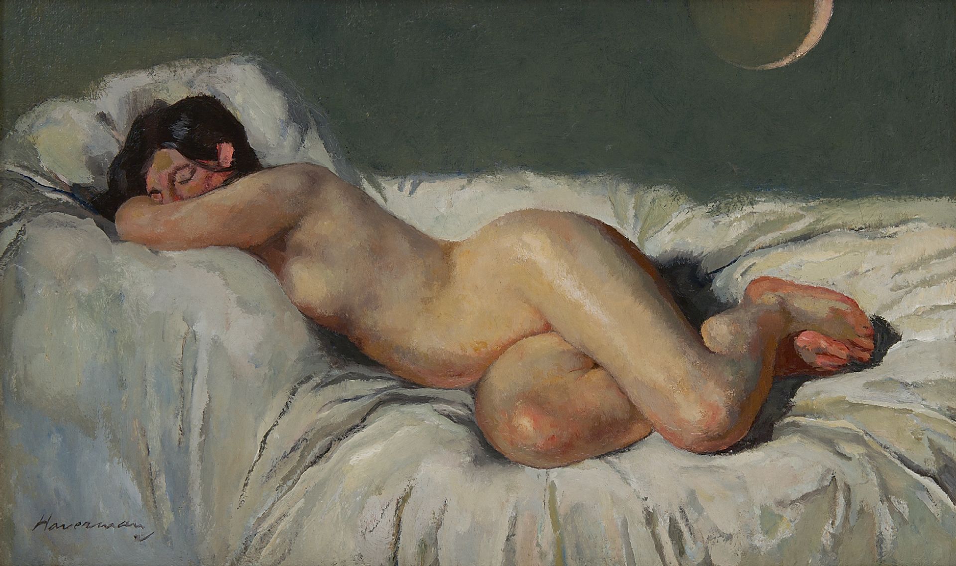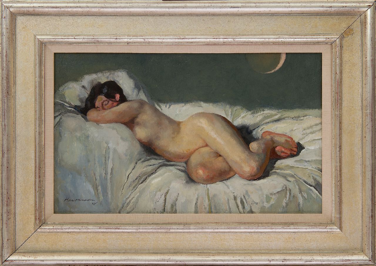 Hendrik Johannes Haverman kunstwerk • schilderij • te koop Liggend naakt bij zonsverduistering