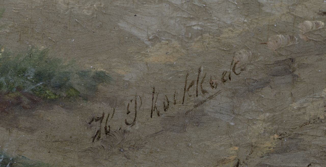 Hendrik Pieter Koekkoek kunstwerk • schilderij • voorheen te koop Boerenvolk op een landweg